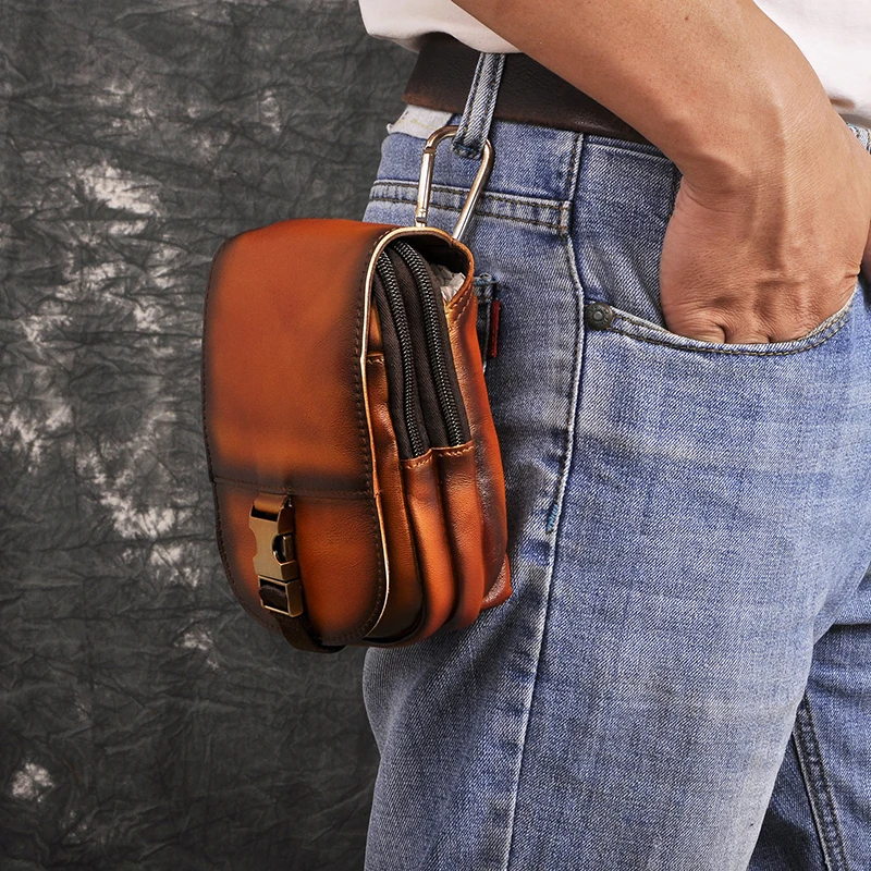 Мужской повседневный поясной кошелек из натуральной воловьей кожи, дизайнерская маленькая сумка на ремень в стиле ретро для повседневного использования, Модный чехол для телефона 5 дюймов, 6185
