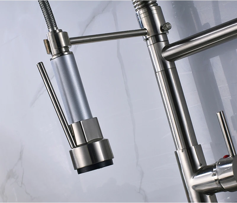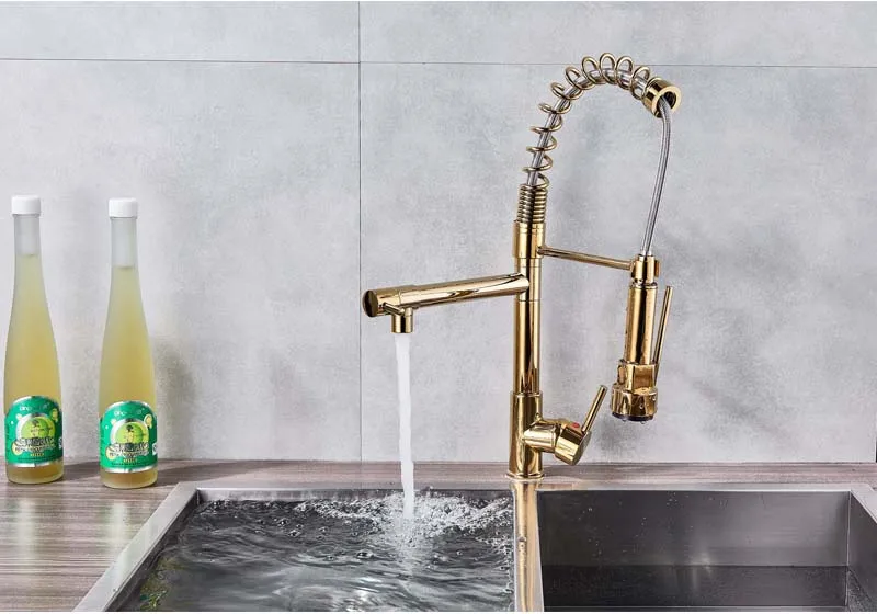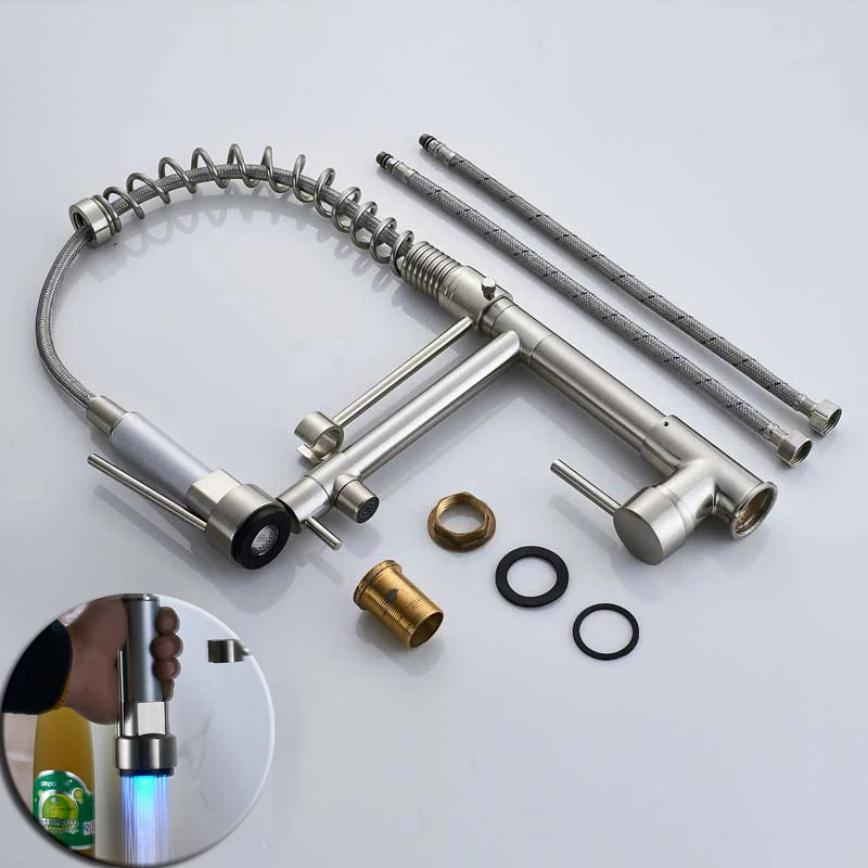 Светодиодный светильник черный Бронзовый Смеситель для кухни с двумя изливами с одной ручкой пружинный выдвижной водопроводный кран для кухни Ручной Кухонный распылитель