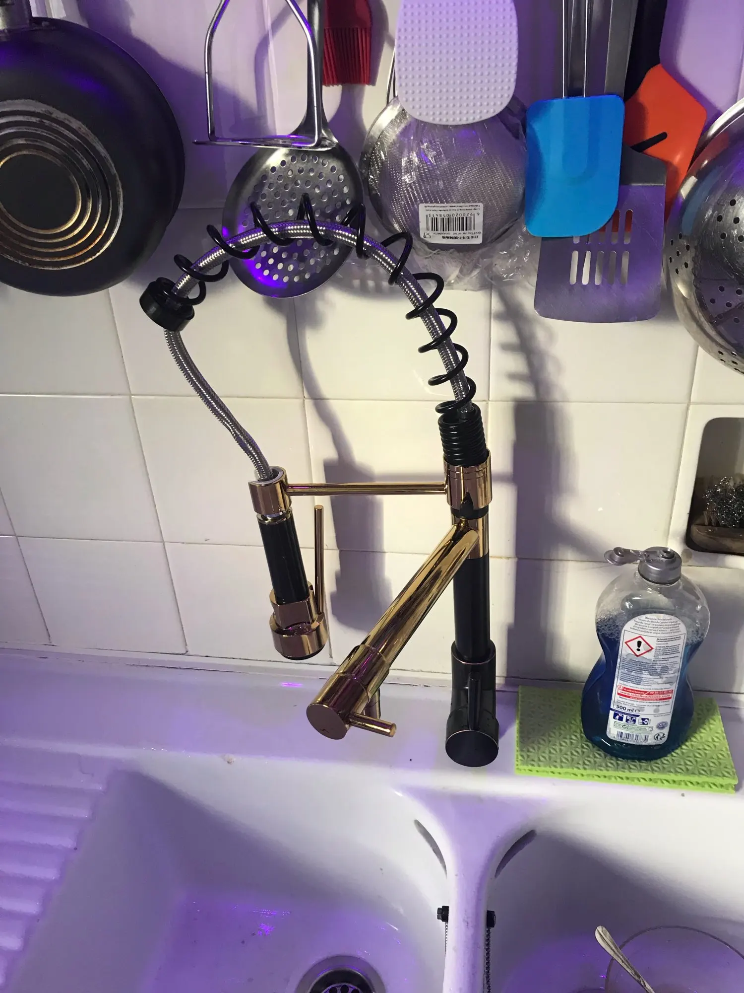 Простой в сборке, кран поставляется с водяным впускным шлангом и адаптером к французским стандартам, для доставки во Францию. Мне очень нравится свет, который изменяется в зависимости от температуры воды