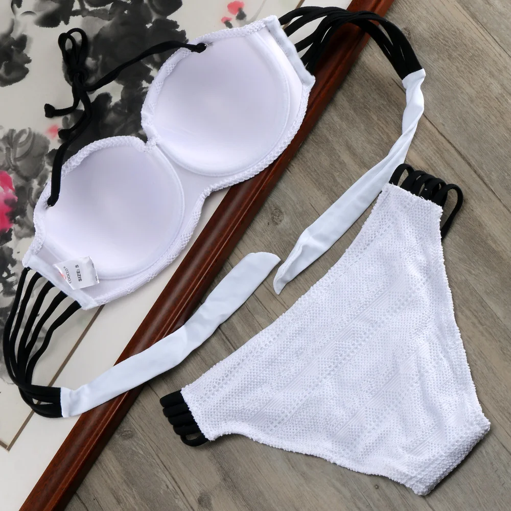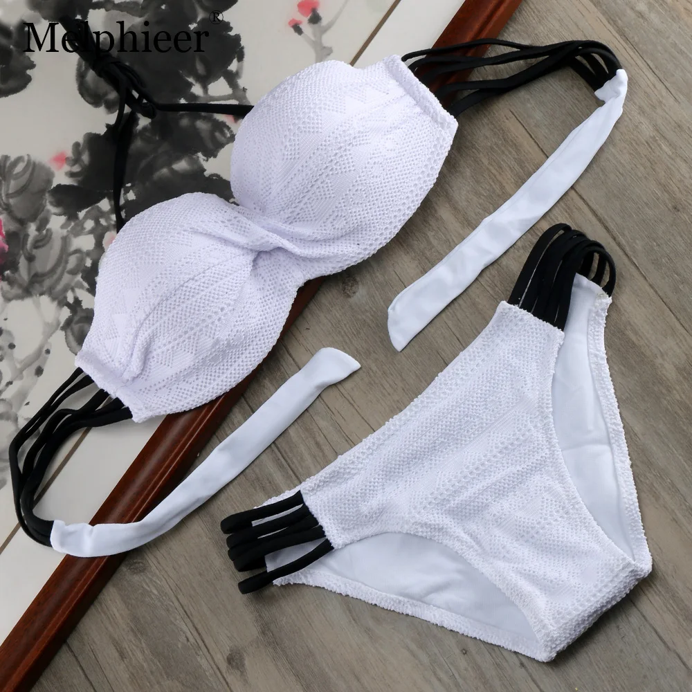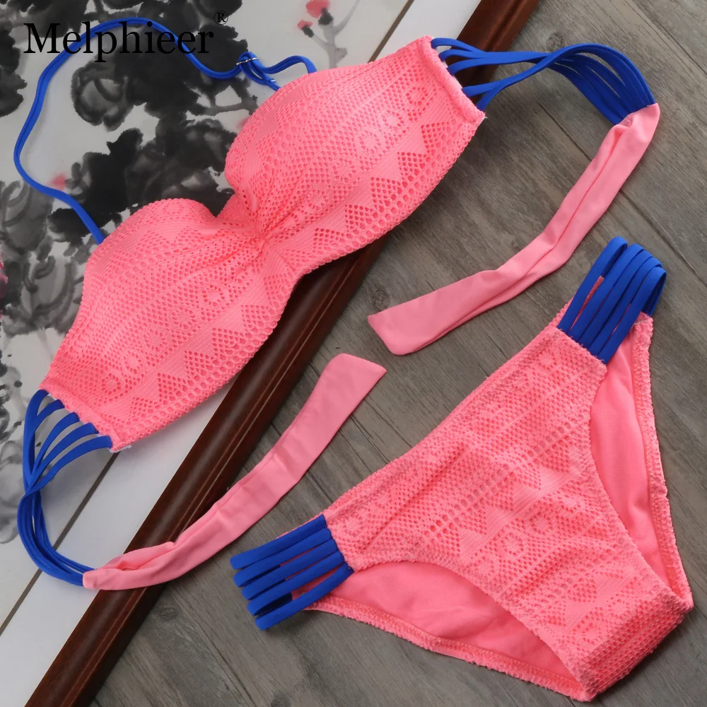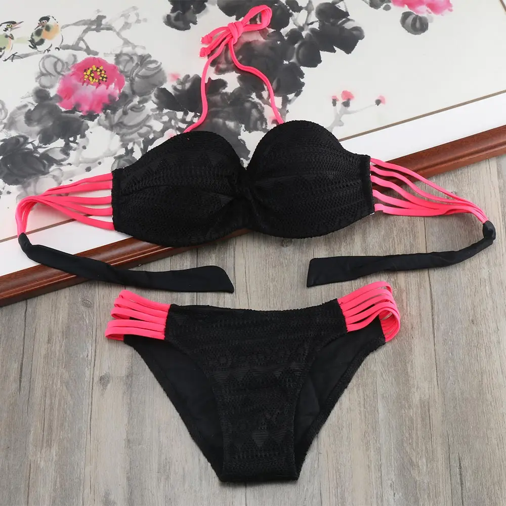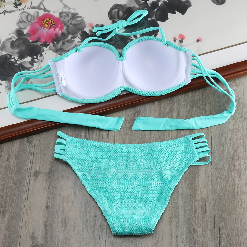 Женский кружевной купальник, однотонный комплект бикини с вырезами, бандо, бикини, купальный костюм с бюстгальтером на косточках, E610, 2019