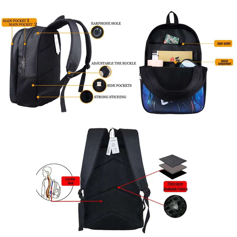 3 шт.компл. японский черный рюкзак Батлер с 3D принтом Мужские школ...
