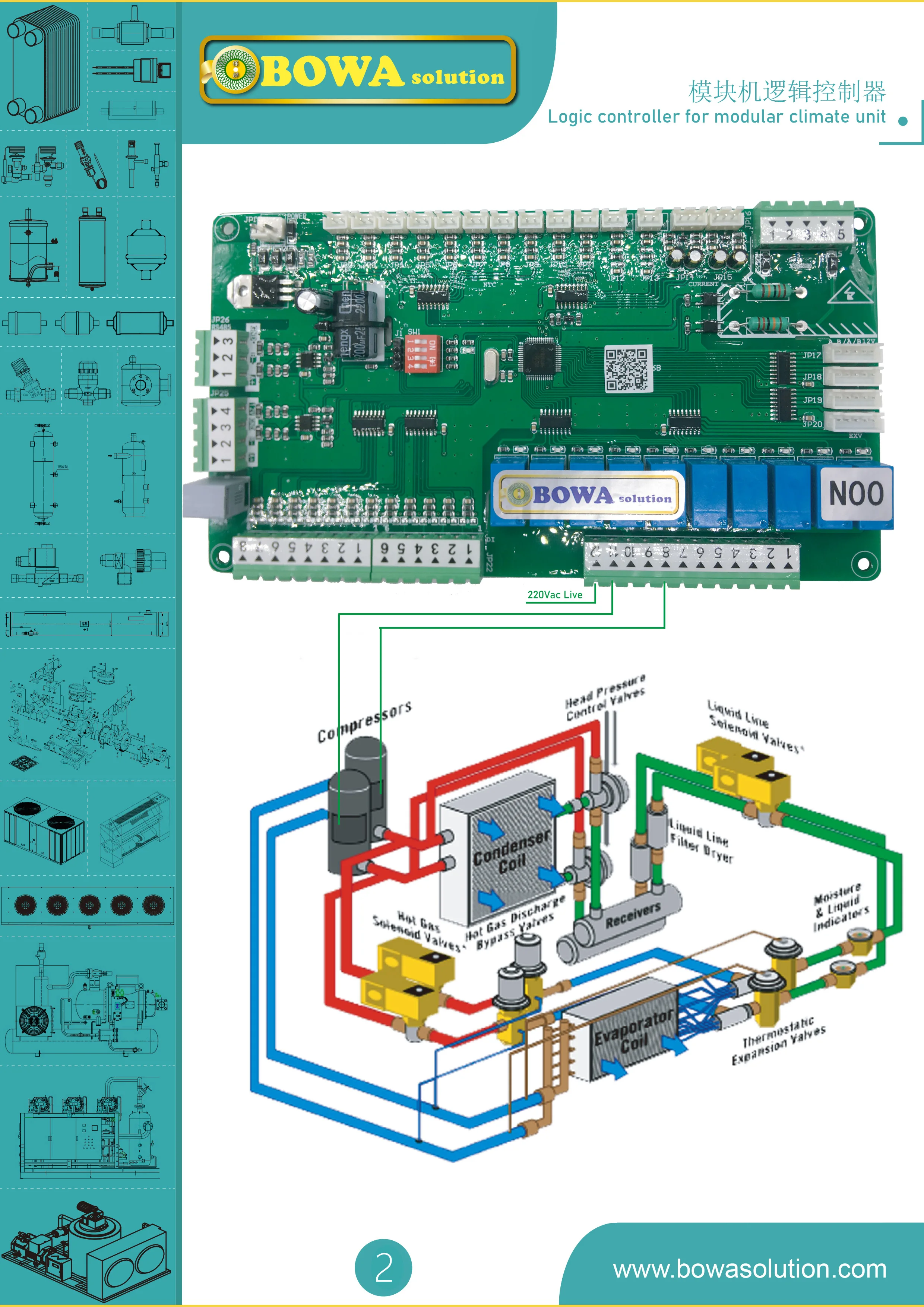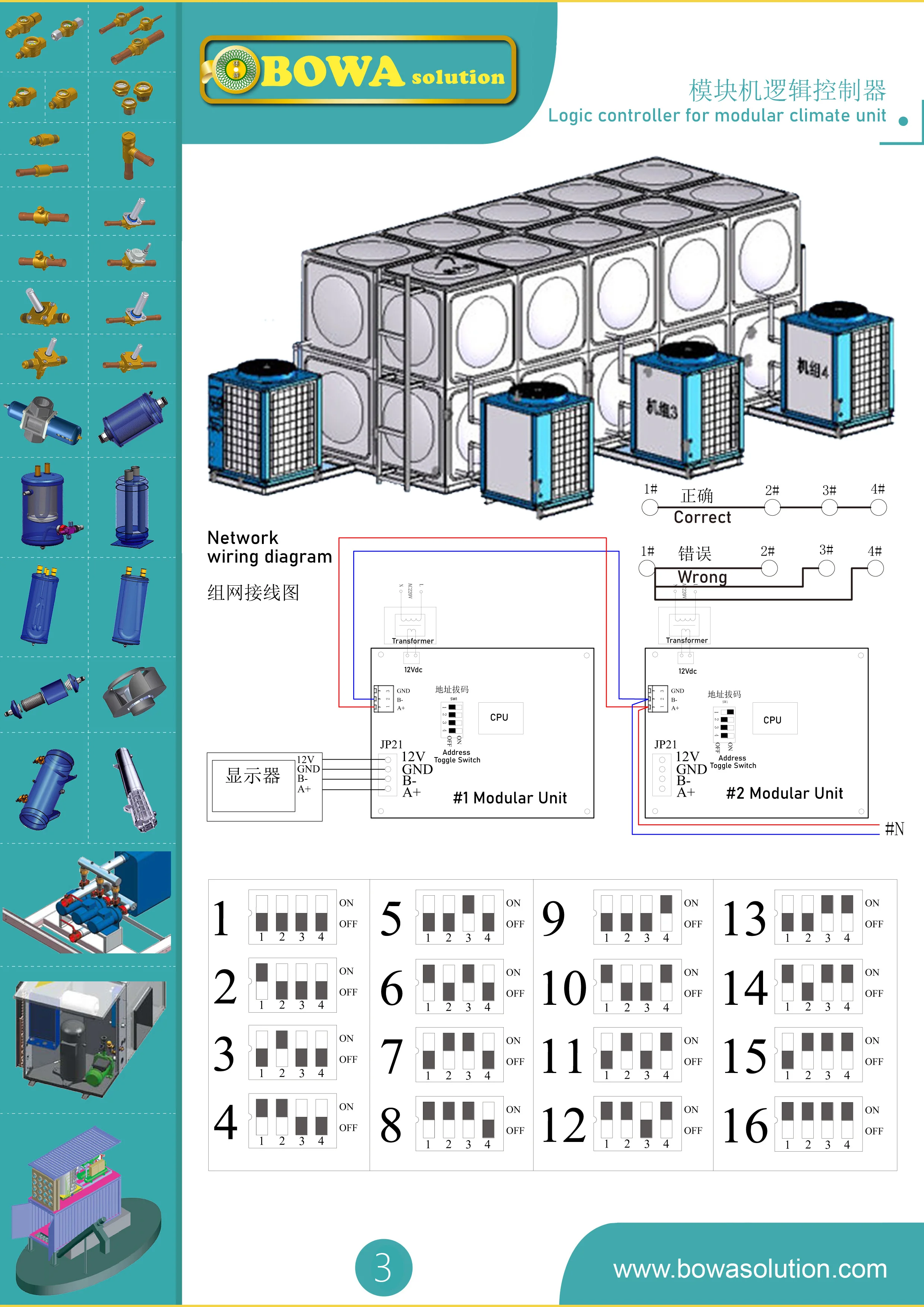Универсальный логический контроллер искусственного интеллекта разработан для модульного климатического оборудования, которое можно группировать в сеть, особенно для двойных кругов хладагента с одним хладагентом. Он может управлять 2 независимыми основными EEV и 2 независимыми EEV, 2 компрессорами вкл/выкл и 4-ходовым обратным клапаном.