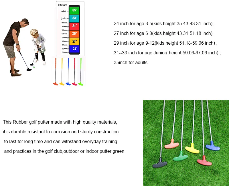 Прочная нержавеющая сталь, яркий цвет и разный размер, подходит для людей всех возрастов, поможет вам играть и наслаждаться игрой в гольф.