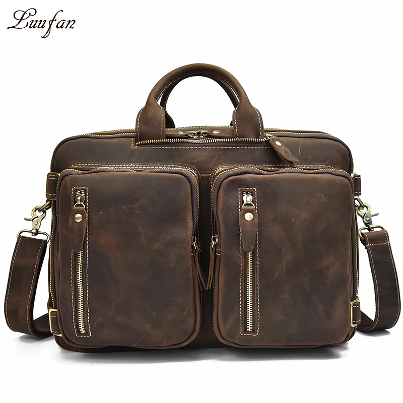 Портфель мужской из натуральной кожи, саквояж на плечо для ноутбука 15 дюймов из натуральной кожи, большой мессенджер из воловьей кожи в деловом стиле