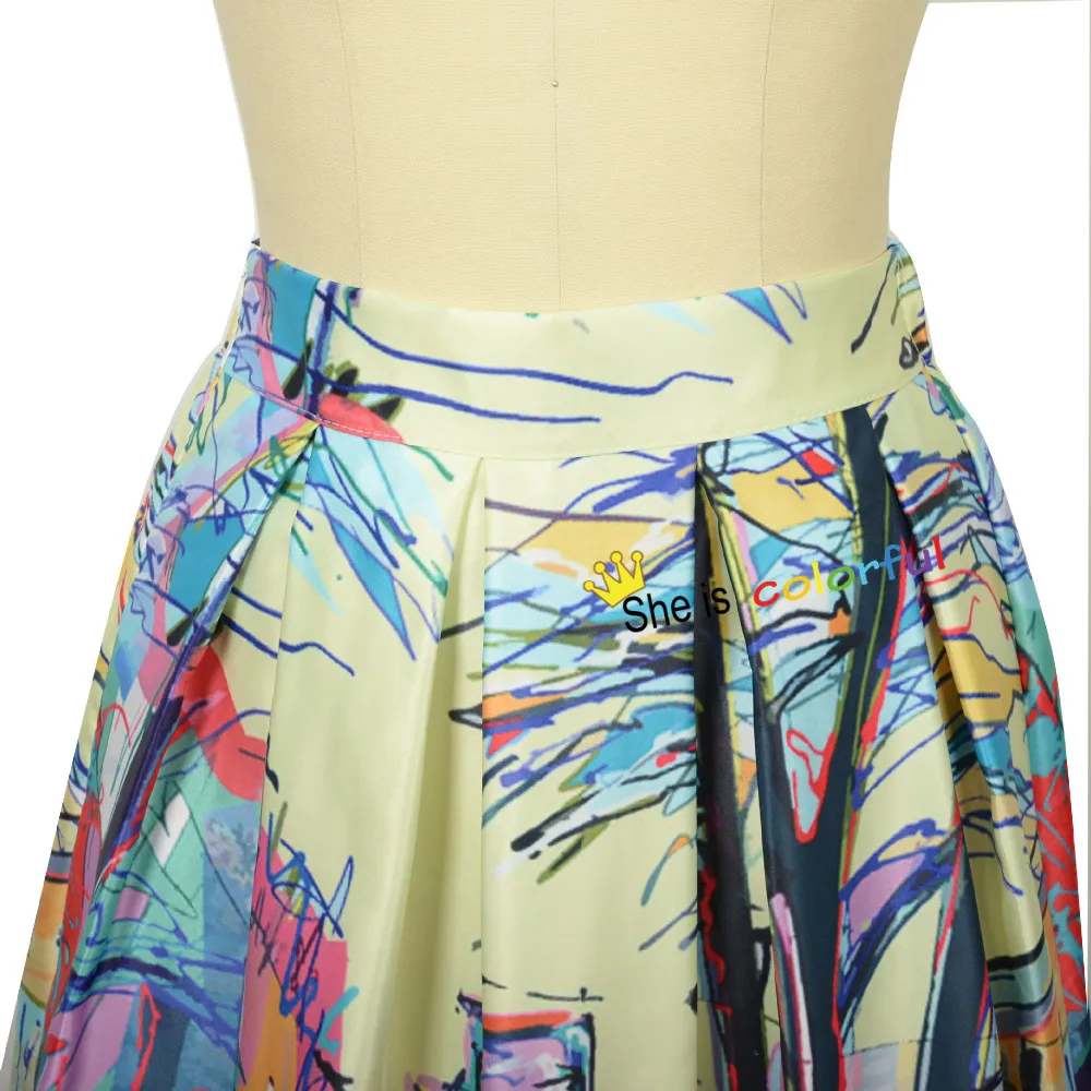 2022 модная атласная Женская юбка летняя винтажная Ретро фантазия пейзаж Картина высокая талия миди юбка бальное платье Saia SK056