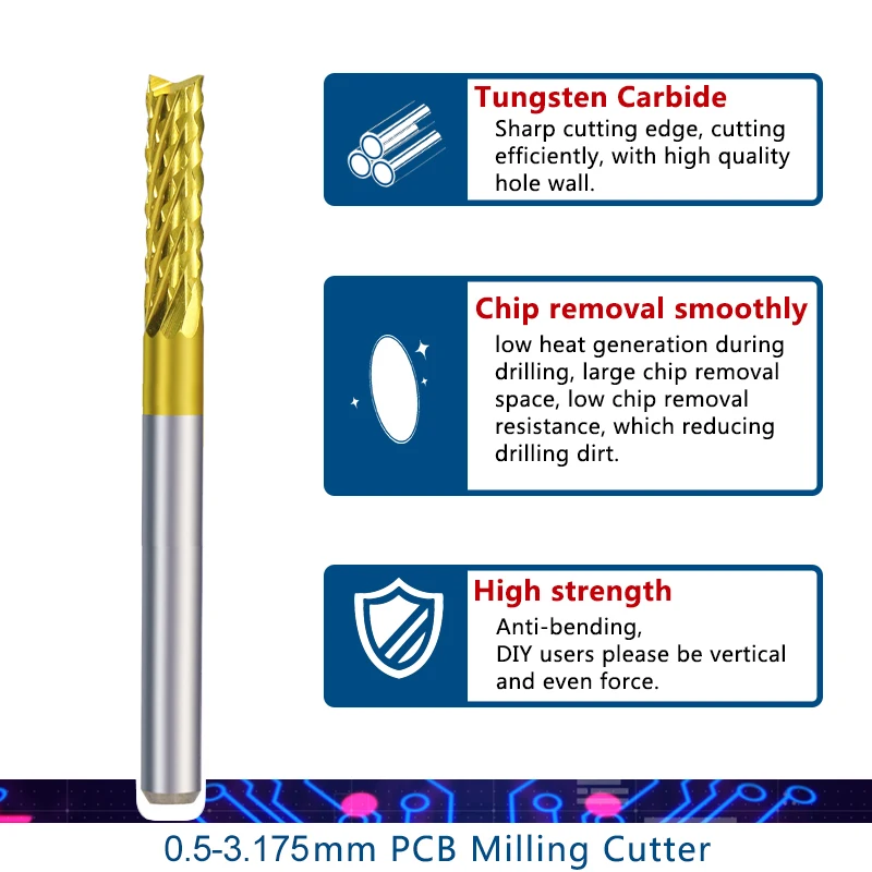 Фреза XCAN для печатных плат, Концевая фреза с покрытием олова 0,5-3,175 мм, хвостовик 3,175 мм, твердосплавный, для печатных плат