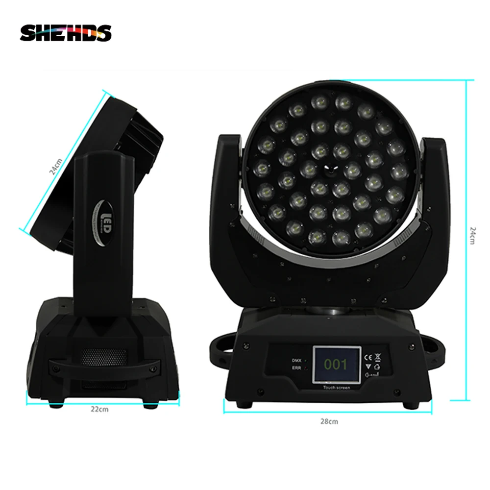 Светодиодный светильник для мытья головы SHEHDS, 36x12 Вт, RGBW, 4N1, масштабируемый, с движущейся головкой, DMX512, светодиодный, с эффектом мытья головы, звуковой и профессиональный светильник ing