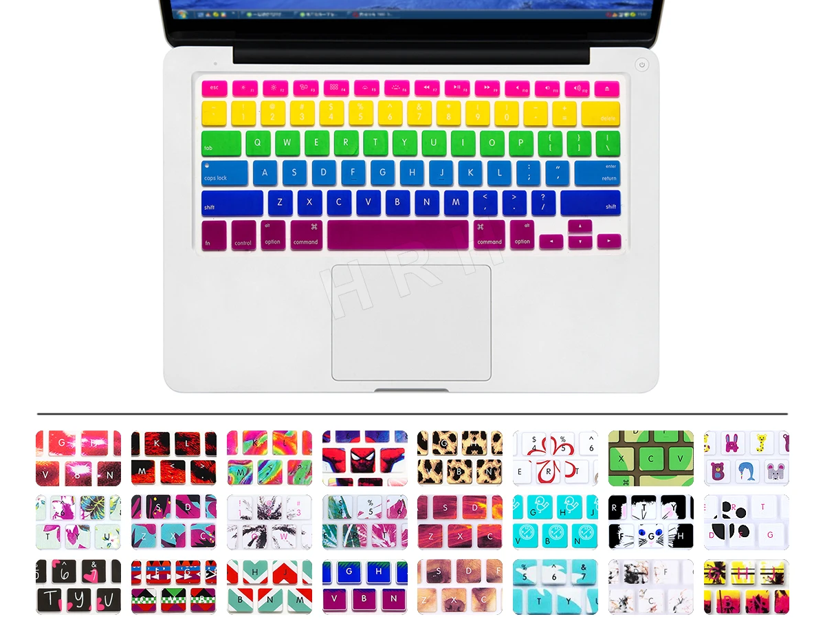 Радужная силиконовая наклейка HRH для клавиатуры США, защитный чехол для клавиатуры Mac book Pro 13, 15, 17, Air Retina