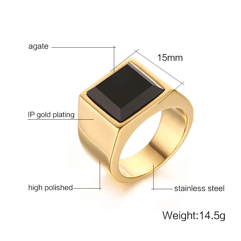 Vnox черный камень Обручальные кольца Кольца для Для мужчин изделия Панк золото-цвет Обручение кольцо большой камень кольцо ювелирные изделия