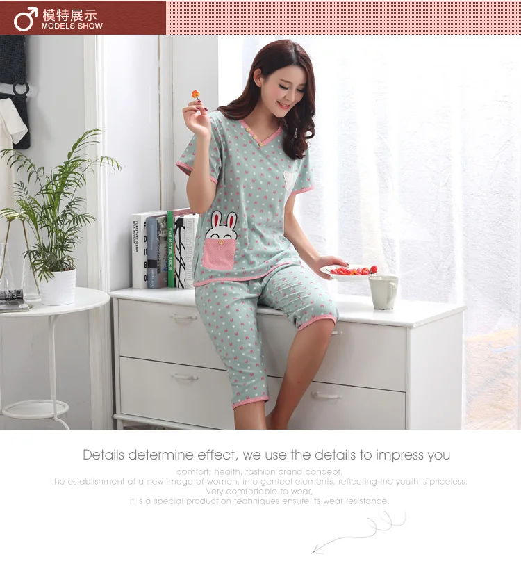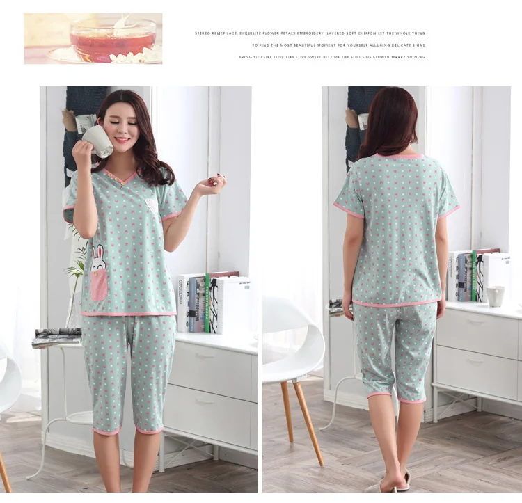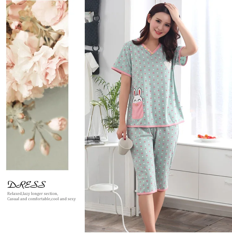 Пижамный комплект Женский, хлопок, короткий рукав, v-образный вырез, домашняя одежда, размера плюс XXXL, лето 2021