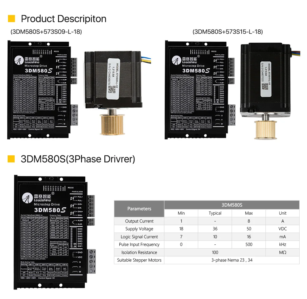 Трехфазный шаговый двигатель Cloudray Leadshine 573S09-L-18573S15-L-18 + шаговый Драйвер 3DM580 для CO2 лазерной гравировальной машины