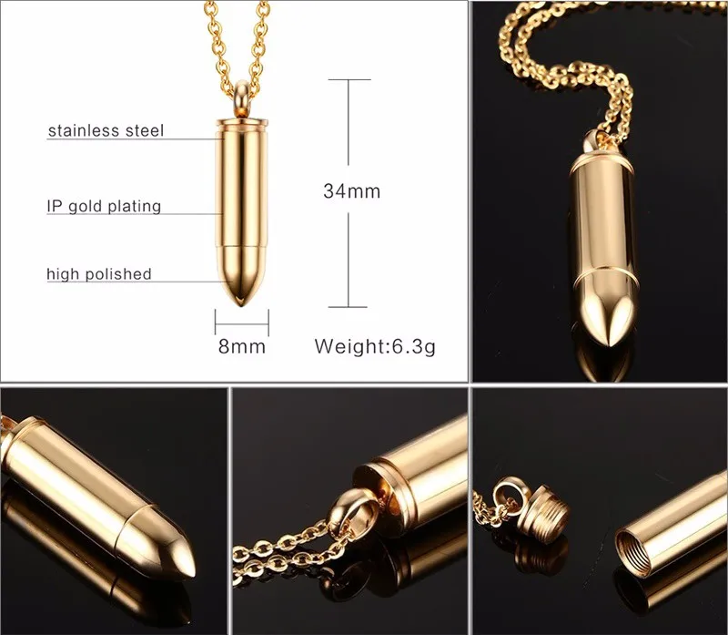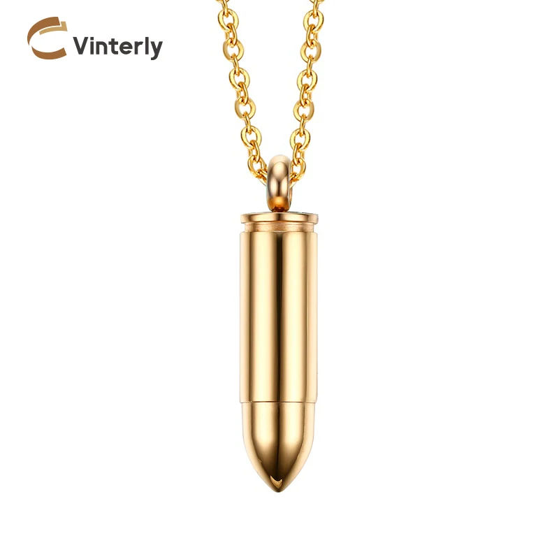 Vinterly, панк, 5 цветов, s, форма пули, нержавеющая сталь, ожерелье для кремации, ожерелье, скребки для домашних животных, урны для золы, золотой цвет, ювелирные изделия