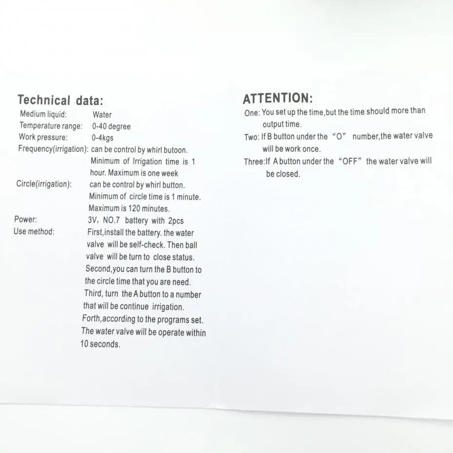 Доставка в течение 38 дней (в среднем) Хороший продукт Я работает с двумя батареями AAA, и я могу услышать Переключение клапана от вкл. До ВЫКЛ. Установка может быть проблемой, если давление воды на моем заводе не в диапазоне.