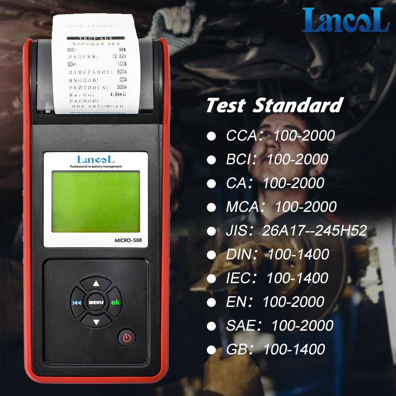 Тестер батарей MICRO ~ 568 использует в настоящее время самую передовую в мире технологию тестирования проводимости, чтобы легко, быстро и точно измерить фактические холодные Скручивающиеся амперы пускового аккумулятора автомобиля, здоровое состояние самой батареи и общая вина системы запуска транспортного средства и системы зарядки, Которые могут помочь сервисному обслуживанию быстро и точно найти проблему, таким образом, чтобы достичь быстрого ремонта автомобиля.