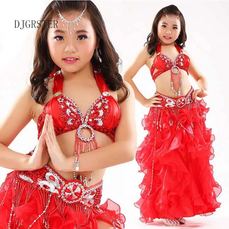 DJGRSTER 2021 Детские костюмы для танца живота 2-3 шт. (бюстгальтеры + юбка + цепочка на талию) Цыганский костюм женский для живота Vestido Indiano 8 цветов