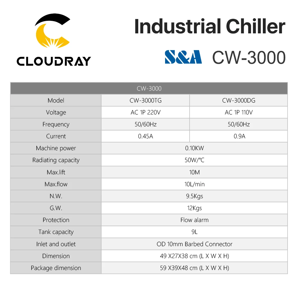 Промышленный водяной охладитель Cloudray S A CW3000 для CO2 лазерной гравировальной режущей машины охлаждение 60 Вт 80 Вт лазерная трубка dg110в AG220V