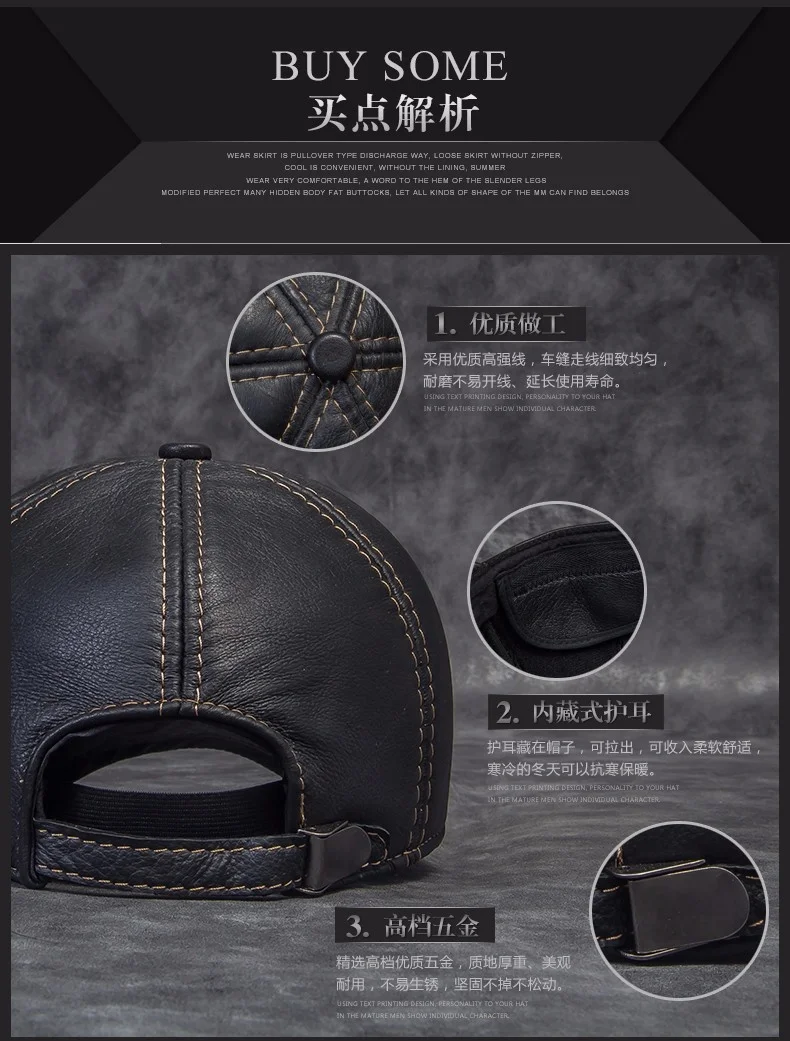 Мужская шапка кожаные теплые бейсболки женская зимняя Регулируемая ...