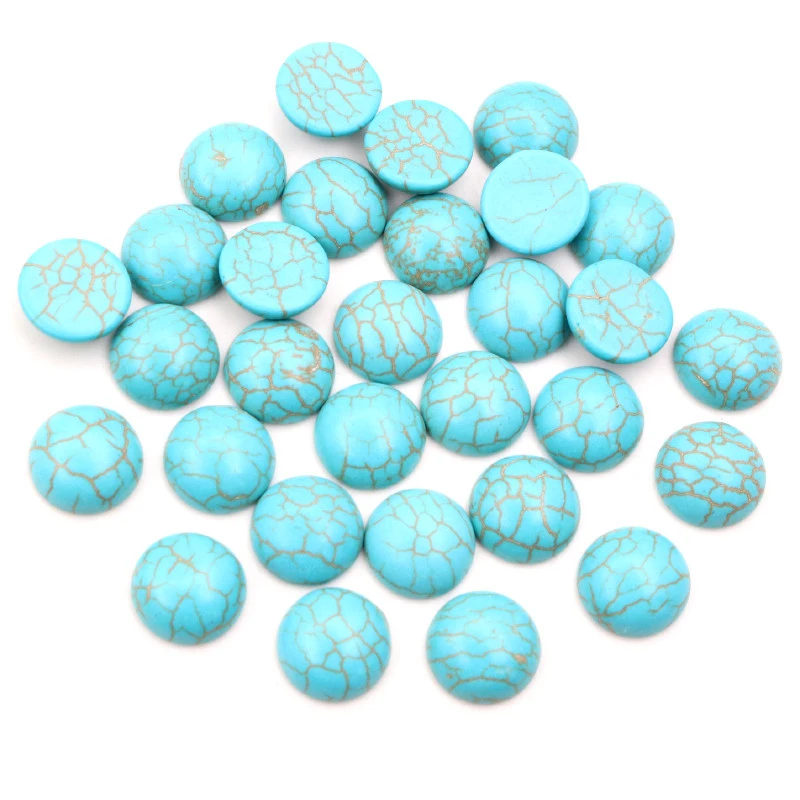 Это крашеный магнезит (общий камень, используемый в качестве доступной замены бирюзы), который является идеальным! Я наполовину ожидал, что они будут из смолы, но это настоящий камень. Они выглядят потрясающе! Становится еще быстрее.