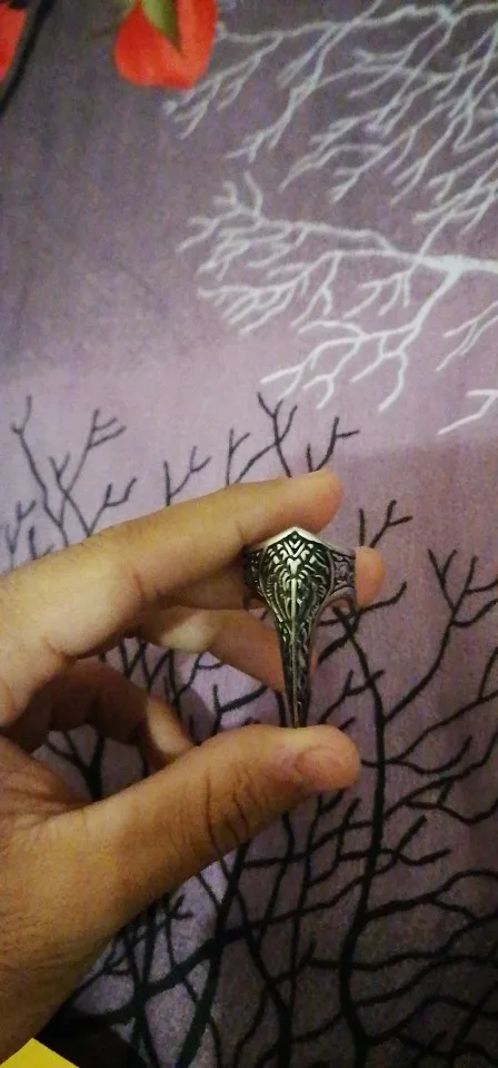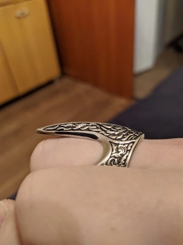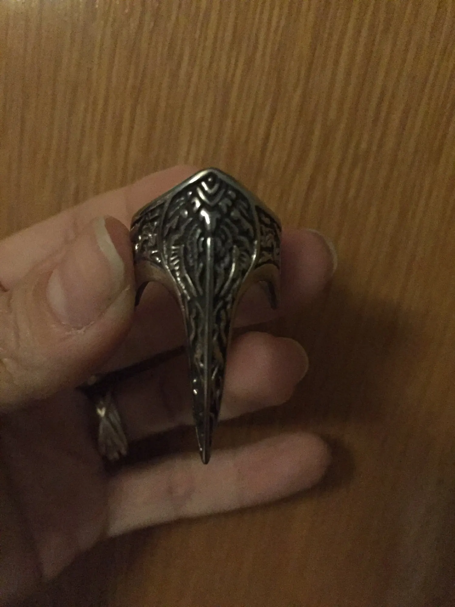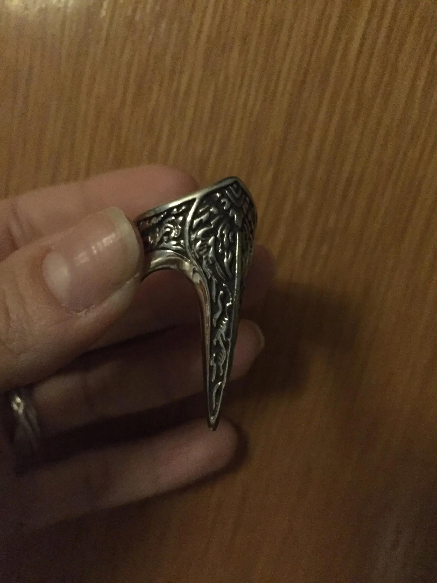 Кольцо пришло по размеру. Заказ отправили быстро. в течении месяца пришло в Польшу. на каждый день носить не получиться, така как будет постоянно за что нибудь цепляться. Остриё к пальцу плотно не прилегает. Из нутри до конца не обработано. и по качеству ровно на 3$.