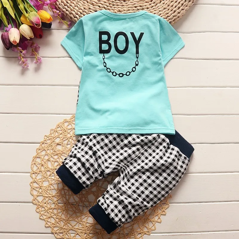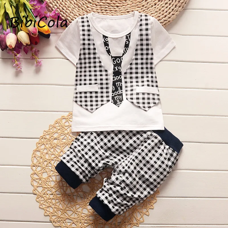 Комплект одежды для мальчиков BibiCola, летний спортивный костюм в клетку, 2 шт.