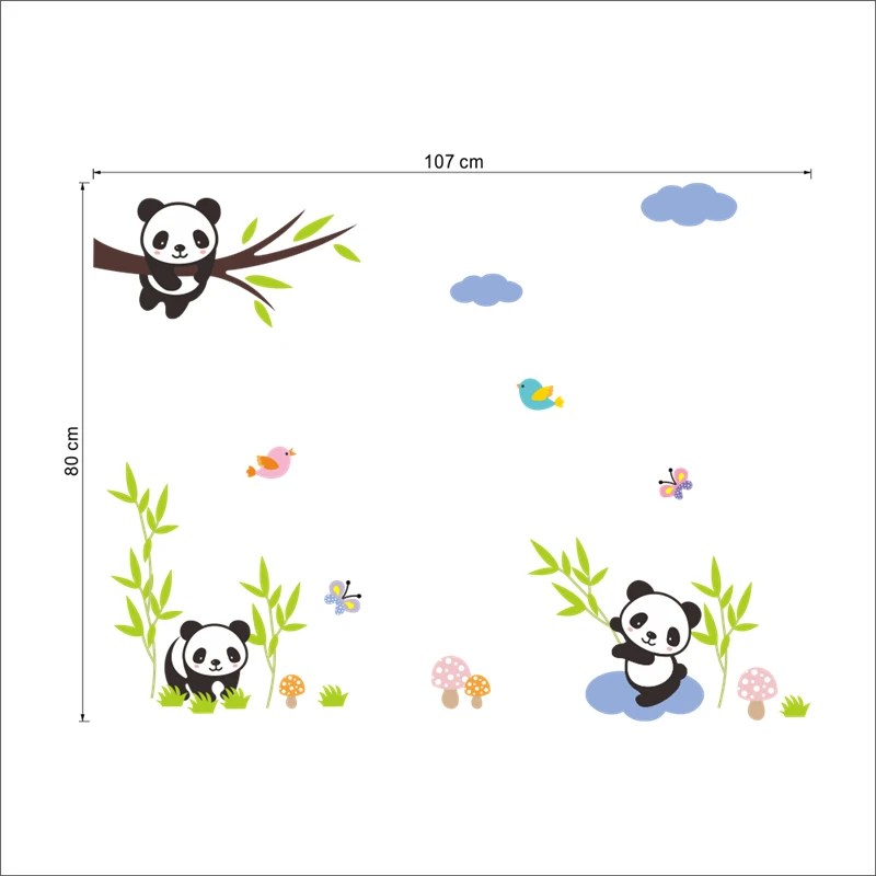 DIY лесная панда бамбуковые птицы дерево небо детская спальня наклейки на стену для детской комнаты мультяшный подарок Детская комната Декор животные зоопарк