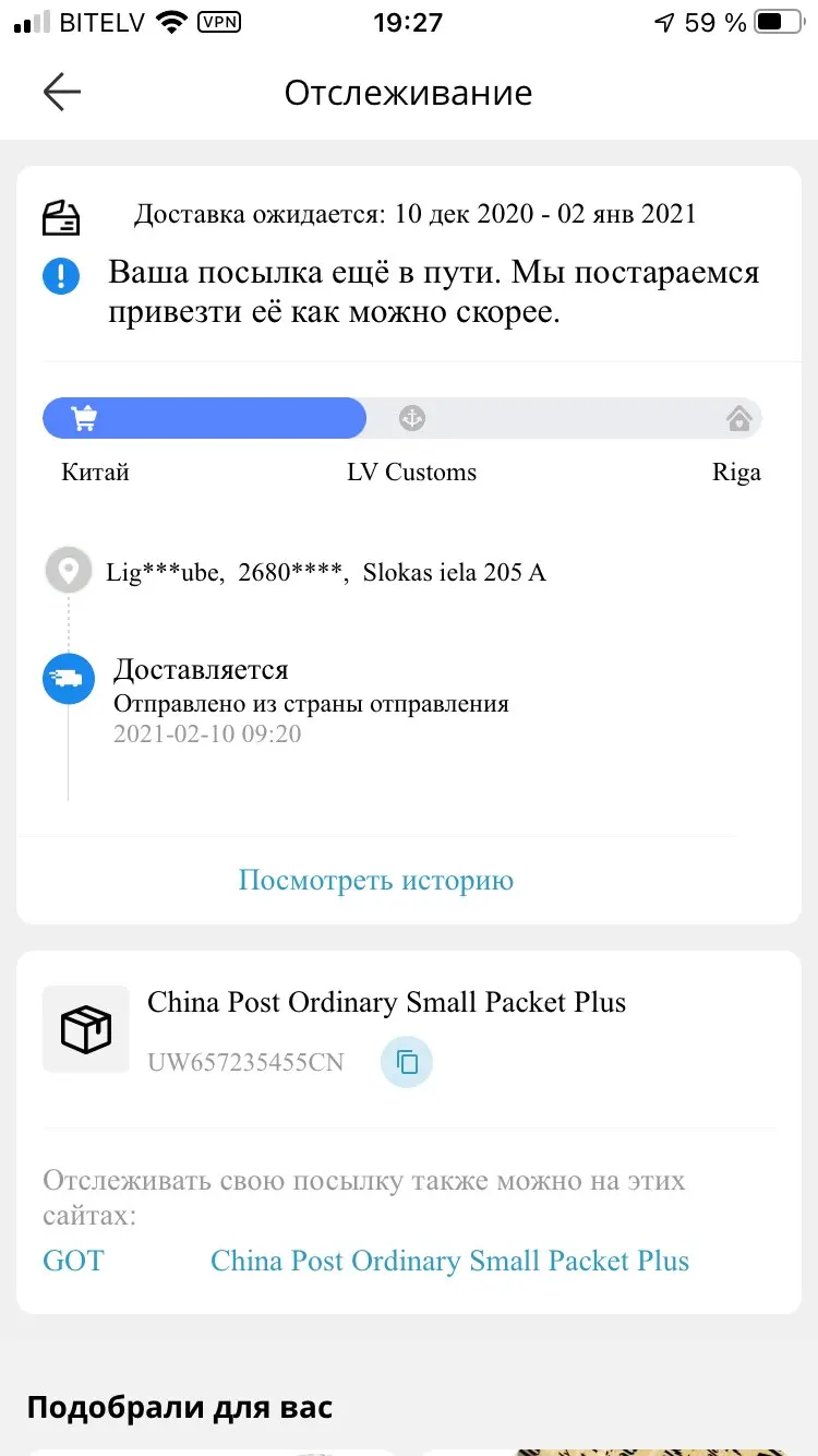 Страна: LT Доставка: Cainiao Super Economy Global 10.10.2020