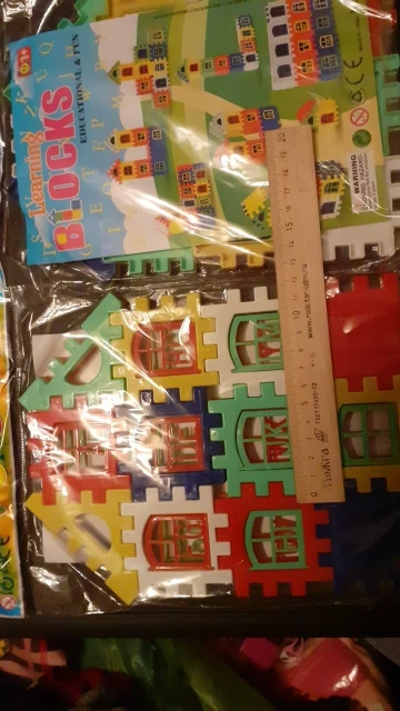пришло очень быстро. каждый квадратик от домика примерно 4,5-5 см. игрушка не большая, приходит в разобранном виде.