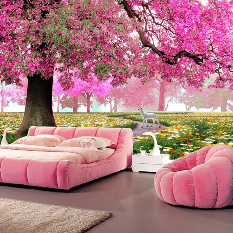 3D романтический розовый лесной МУРАЛ любого размера под заказ, Настенный декор, рулон бумаги для спальни, гостиной, дивана, фоновое покрытие для стен, фрески