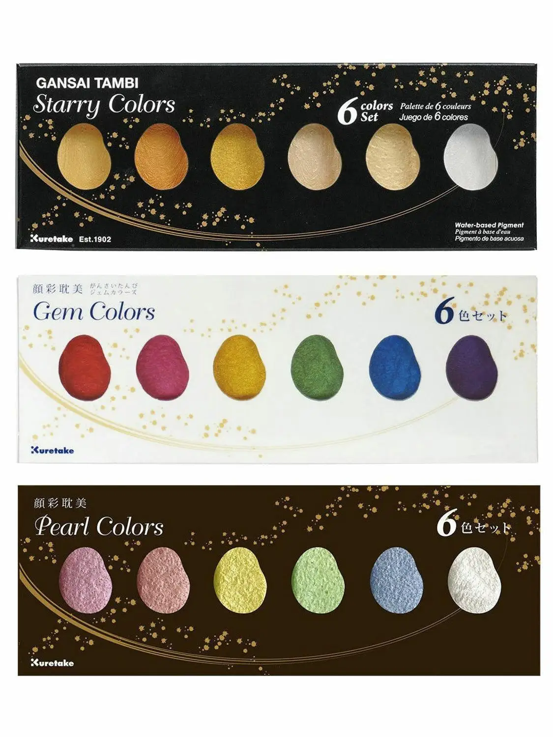 ZIG Kuretake краски GANSAI, Звездный цвет, s твердые краски, металлик, золото, Акварельные краски, жемчужный цвет, Звездные краски, Япония
