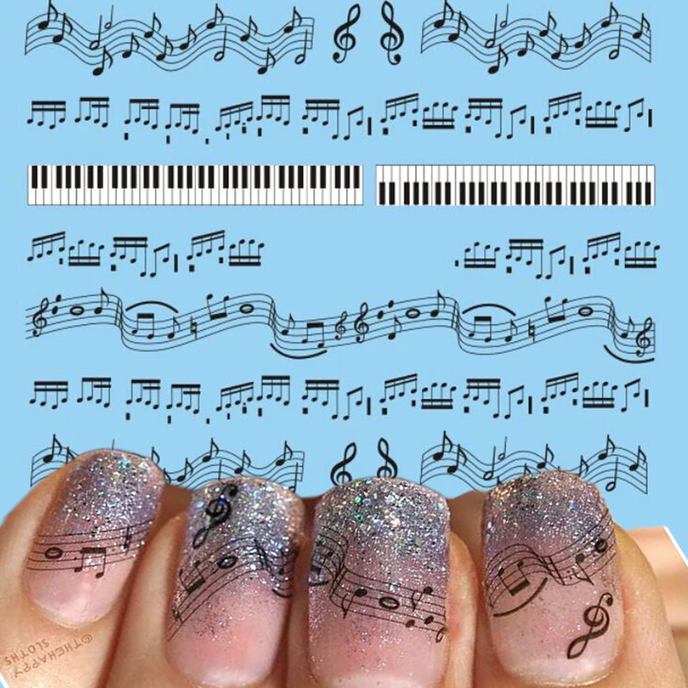 1 лист горячий дизайн ногтей Черный Музыкальный нот печать DIY ногти Пальцы женщин ногтей стикер наклейки татуировки инструменты # Новый
