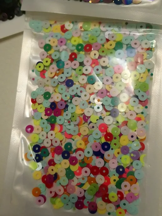Посылка пришла быстро. Очень все хвалили миксы этого продавца, поэтому я ожидала большего. Цвета не соответствуют тем, которые предлагает продавец: они намного ярче, чем на картинке. Кажутся кислотными, а на картинке нежные, пастельные. Конечно, в работе буду использовать, но именно пастельные цвета уже не выберу к покупке. Ещё минус именно этого микса - очень много брака. Заказала ещё один микс у этого продавца, в нем такого нет. Здесь же куча пайеток с дыркой не по середине, много вообще не пробитых, много отходного мусора.... ну, может мне просто со дна набирали. В общем, рекомендовать именно этот микс не буду.
