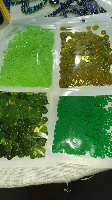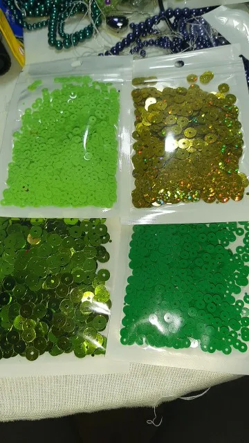 Получила 7 заказанных пакетиков пайеток одной посылкой. Продавец положил подарок--пакетик зелёных пайеток 4мм,спасибо большое, не ожидала, очень приятно. Пайетки классные!