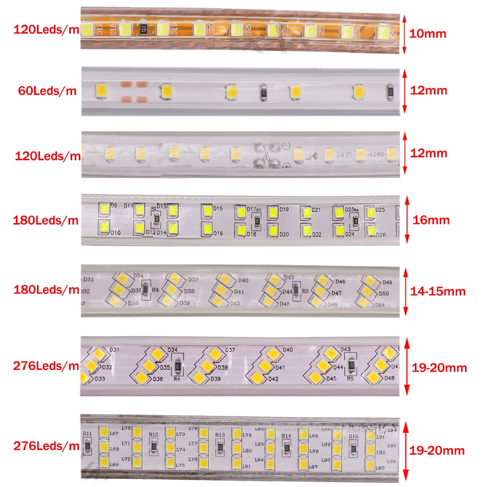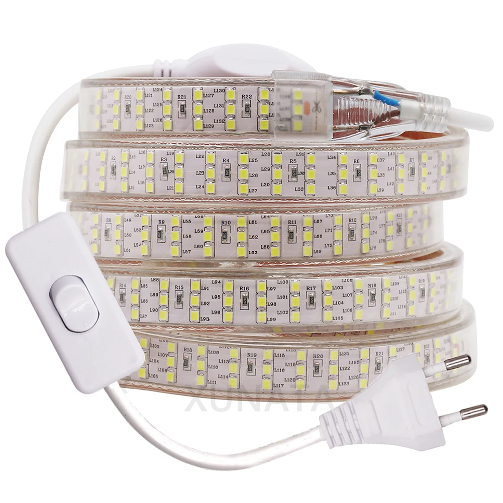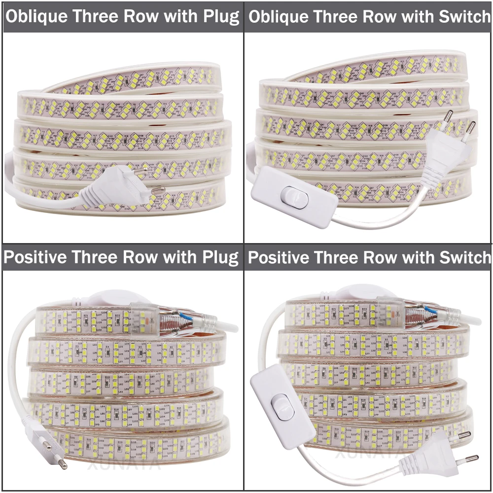 Светодиодная трехрядная лента 276, гибкая Водонепроницаемая лампа 220 В 2835 с евровилкой, для домашних праздничных украшений, светодиодовм
