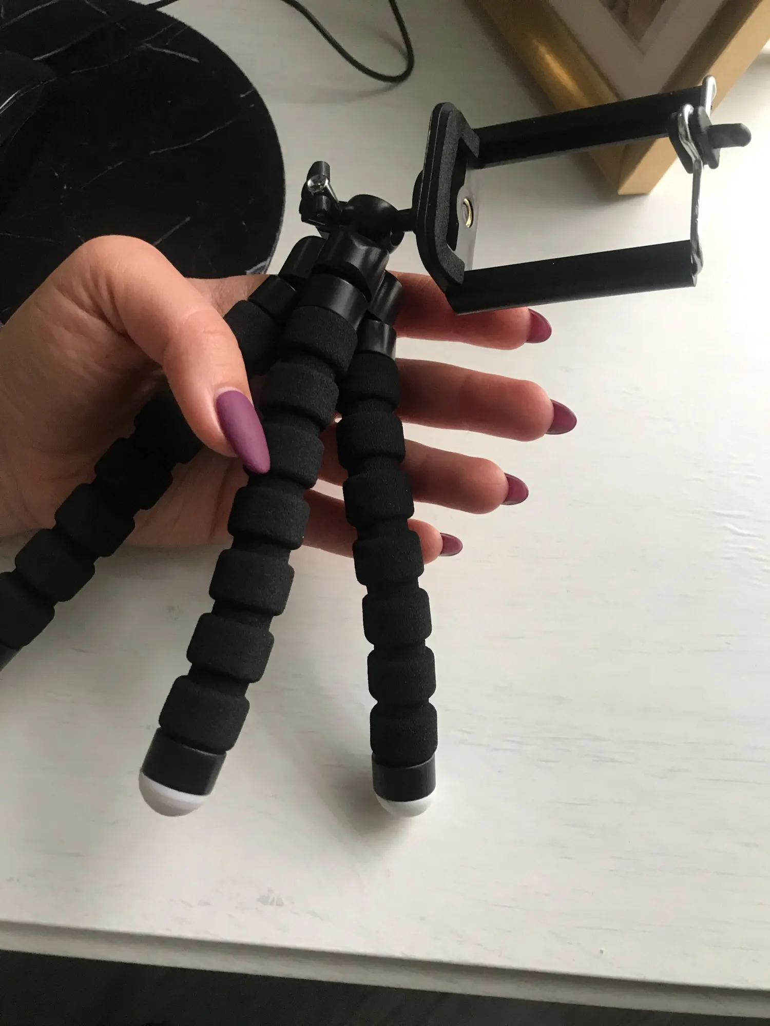 Он пришёл очень(!) быстро, собственно я и искала с быстрой доставкой. Он выглядит именно так, как представлен. Всё хорошо, но для меня есть минус. У меня тяжёлый и большой телефон и если неправильно поставить штатив, он просто упадёт. В принципе я уже приспособилась и мне достаточно удобно. Штучка, которая держит телефон не сказала бы, что идеальная. телефон иногда выскакивает и стоит не ровно, но в принципе советую, за свою цену отличный