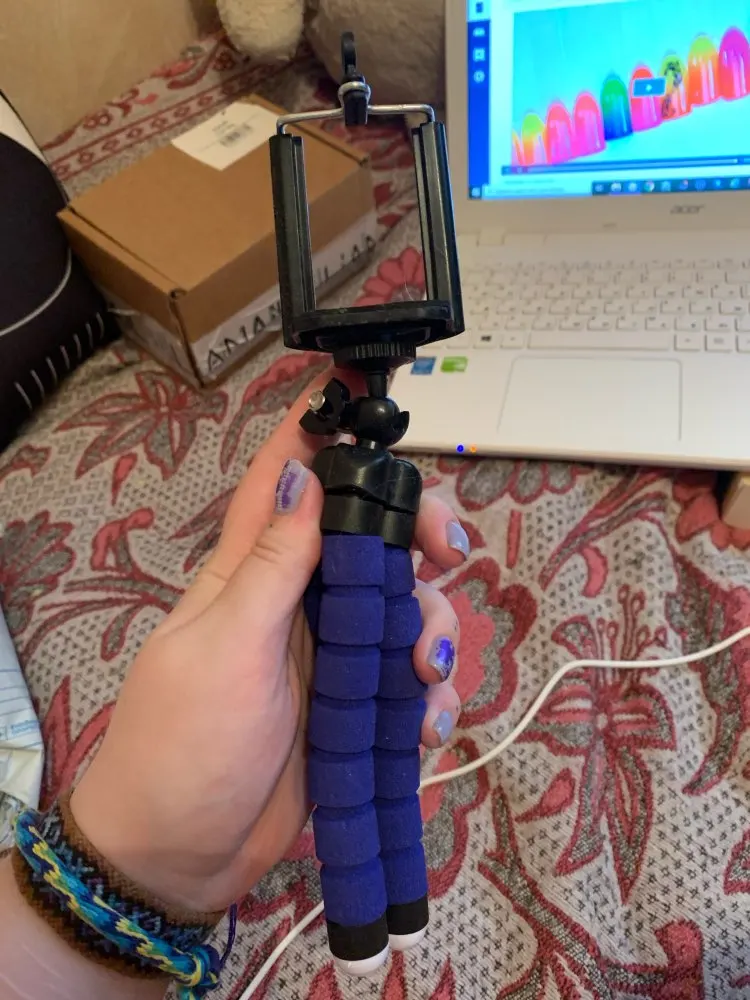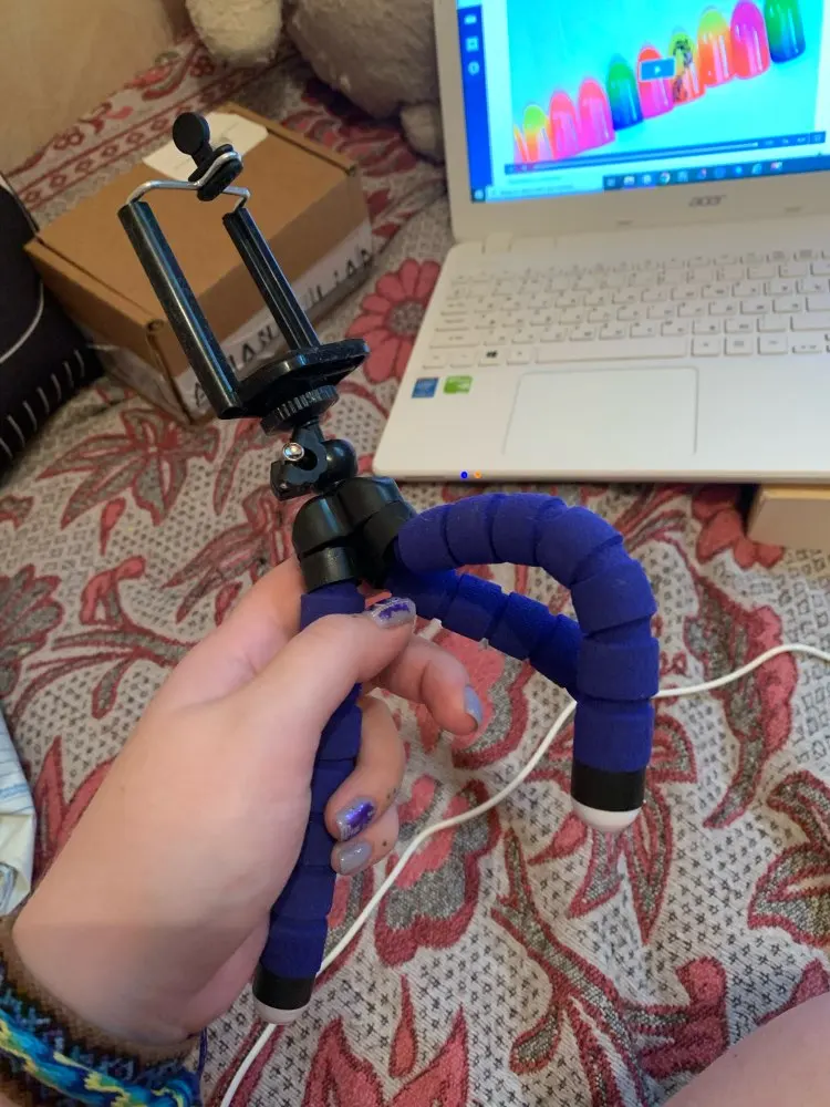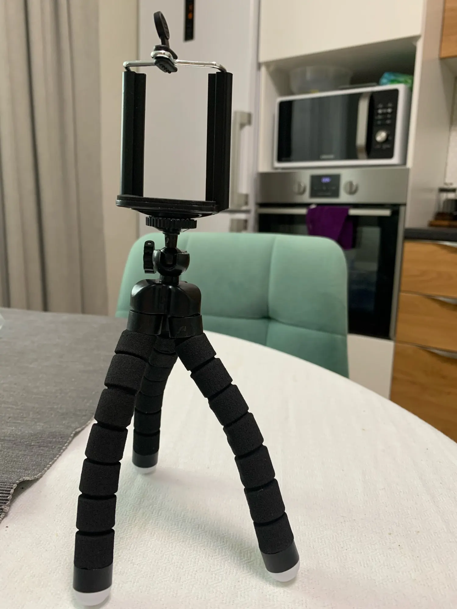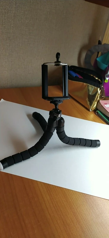 Классный штатив! Легкий,не большой и удобный. Ножки гнутся. Материал приятный и не скользит. На ножках прорезиненные наконечники. Доволен!