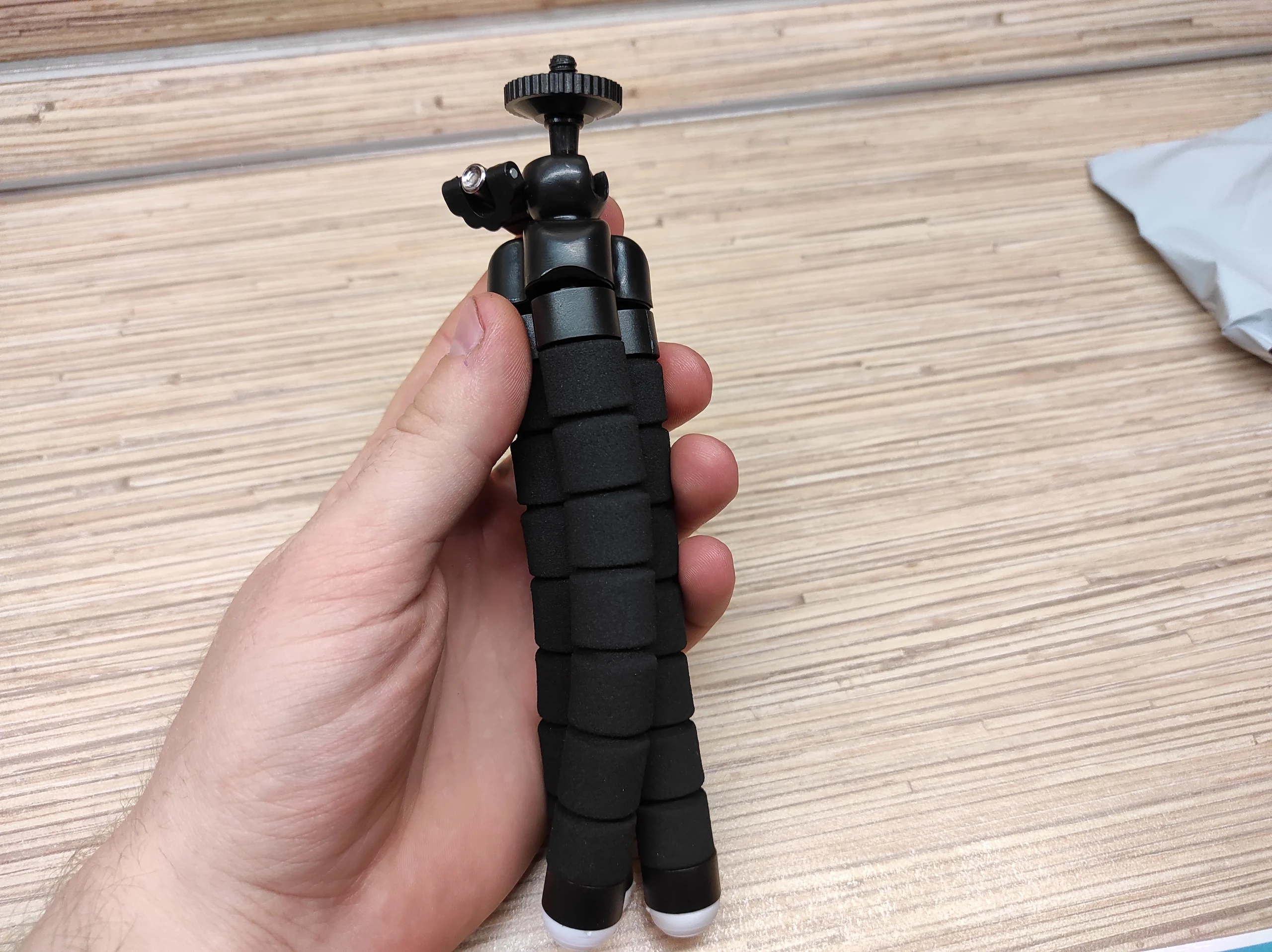 Ножки гнаться хорошо. На ощупь глупый паролон. Можно прикрепить на голову типа го про. Держит телефон хорошо, но с диким натягом. Колю ей орехи всем встречным, если постараться можно воткнуть куда хочешь, тогда точно го про. Можно использовать в случаях самообороны.