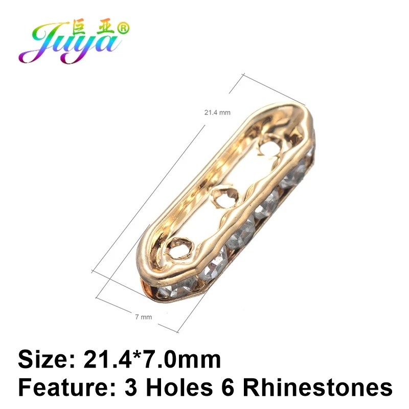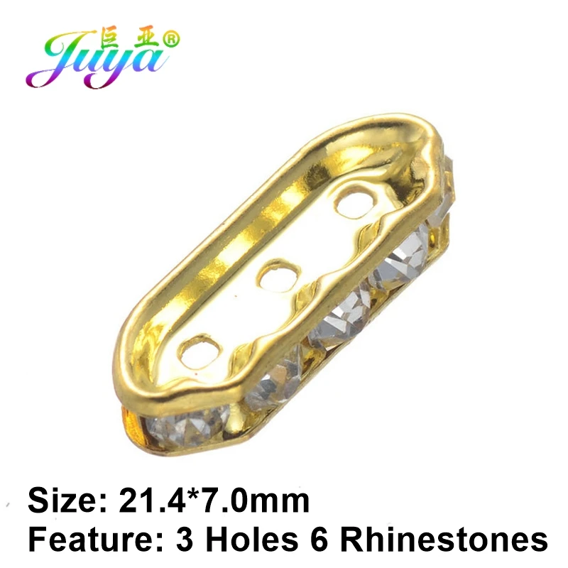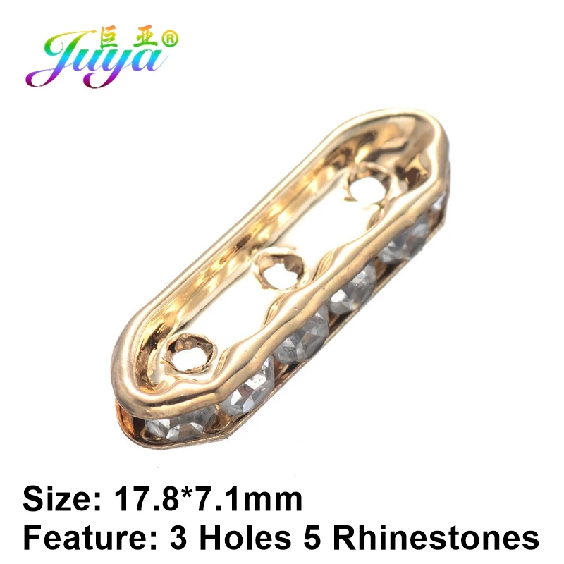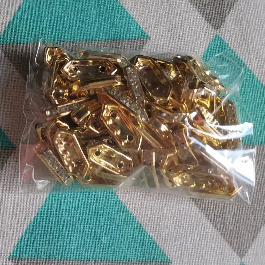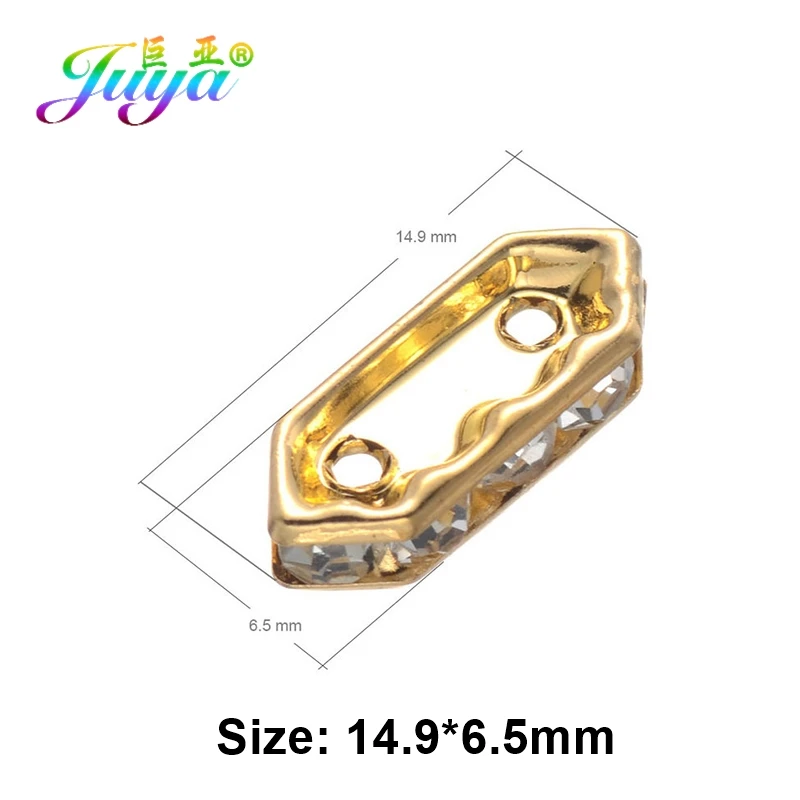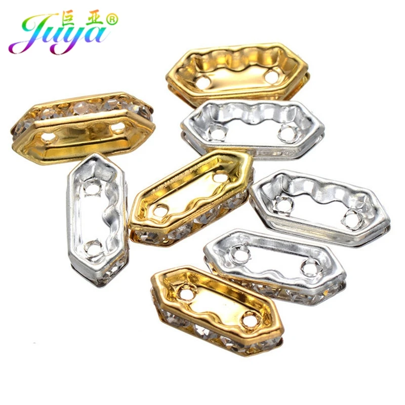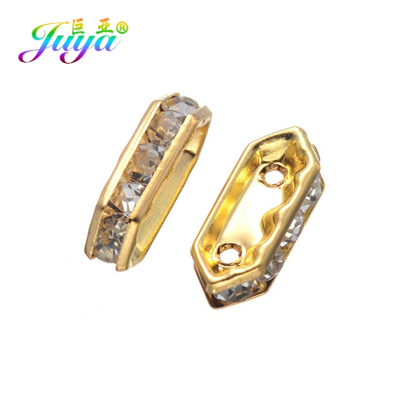 Juya 50 шт.лот, оптовая продажа, золотые бусины с двумя отверстиями из фианитов в форме ромба, металлические бусины с отверстием для изготовления ювелирных изделий ручной работы