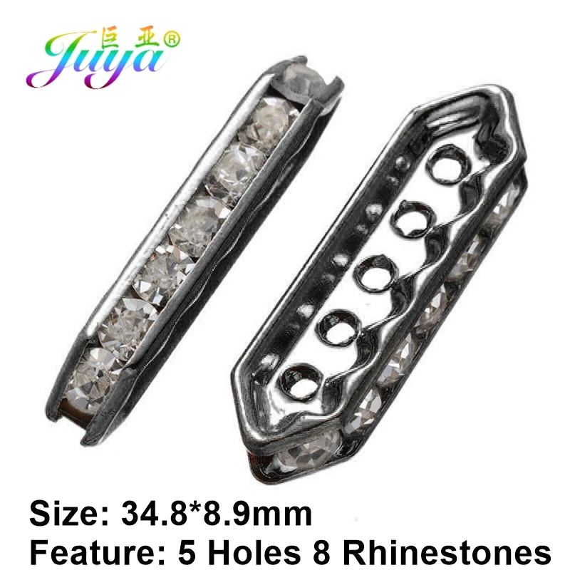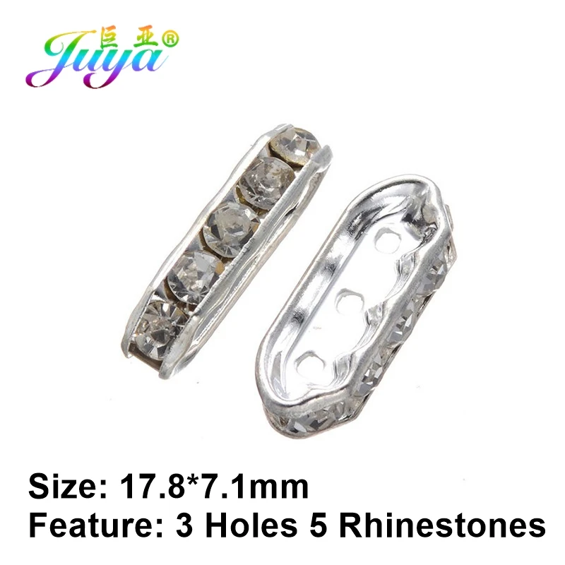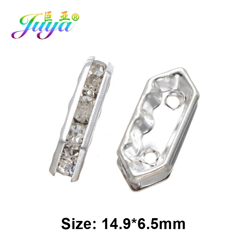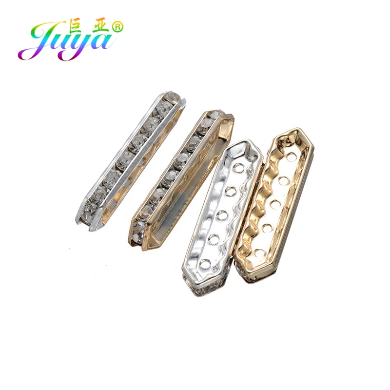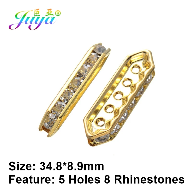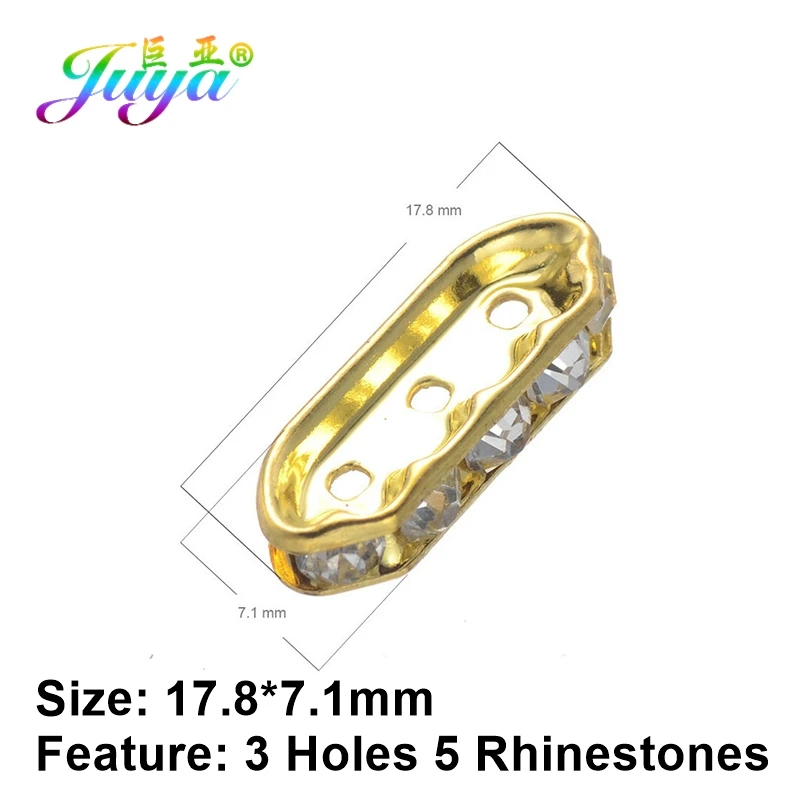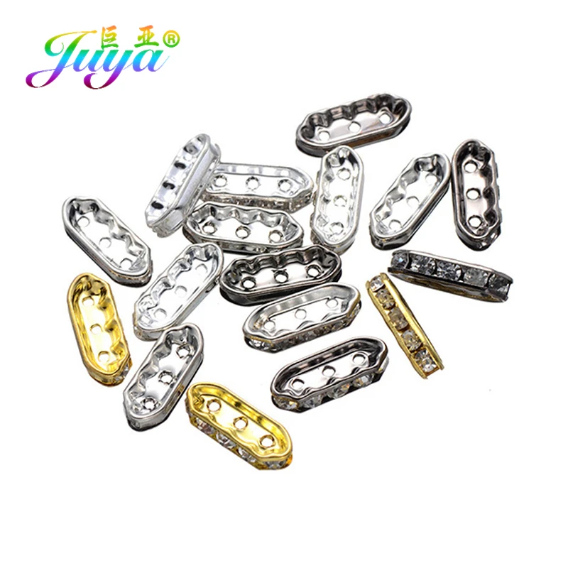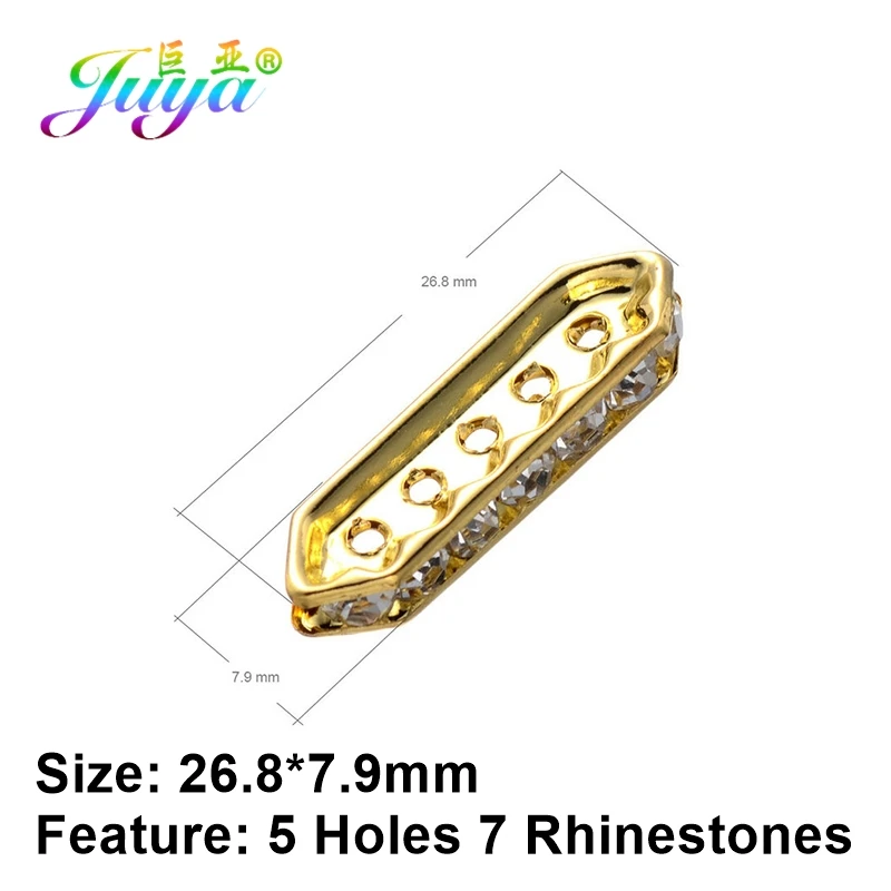 Juya 50 шт.лот, оптовая продажа, золотые бусины с двумя отверстиями из фианитов в форме ромба, металлические бусины с отверстием для изготовления ювелирных изделий ручной работы