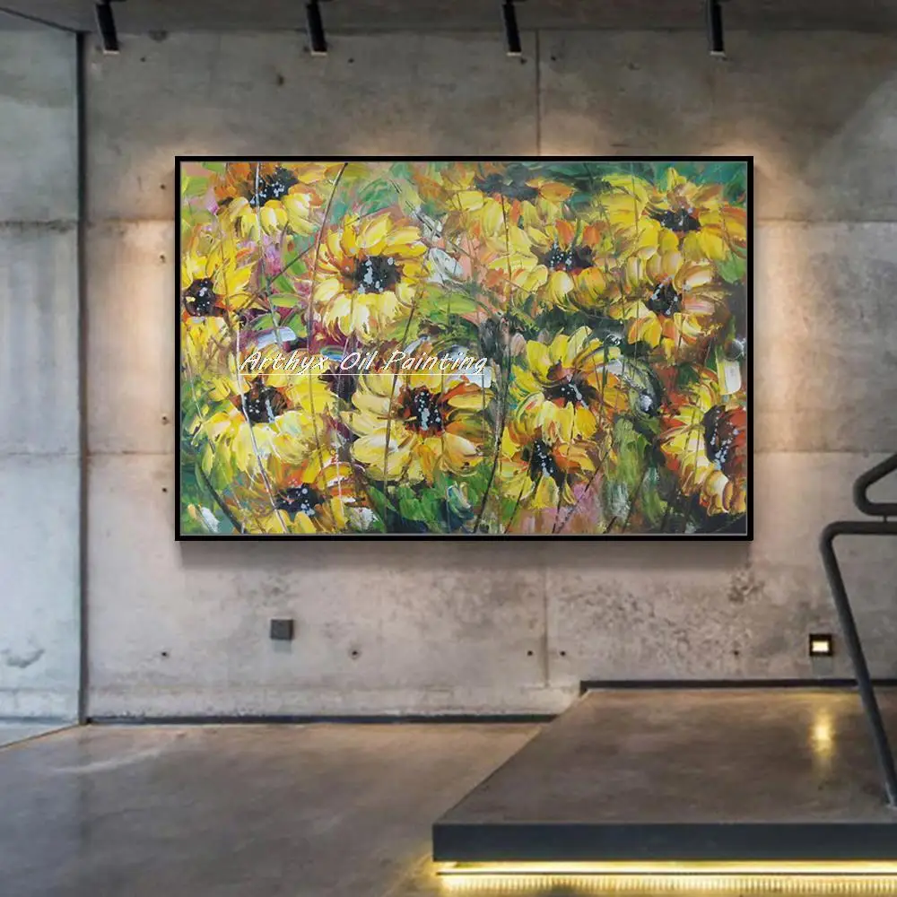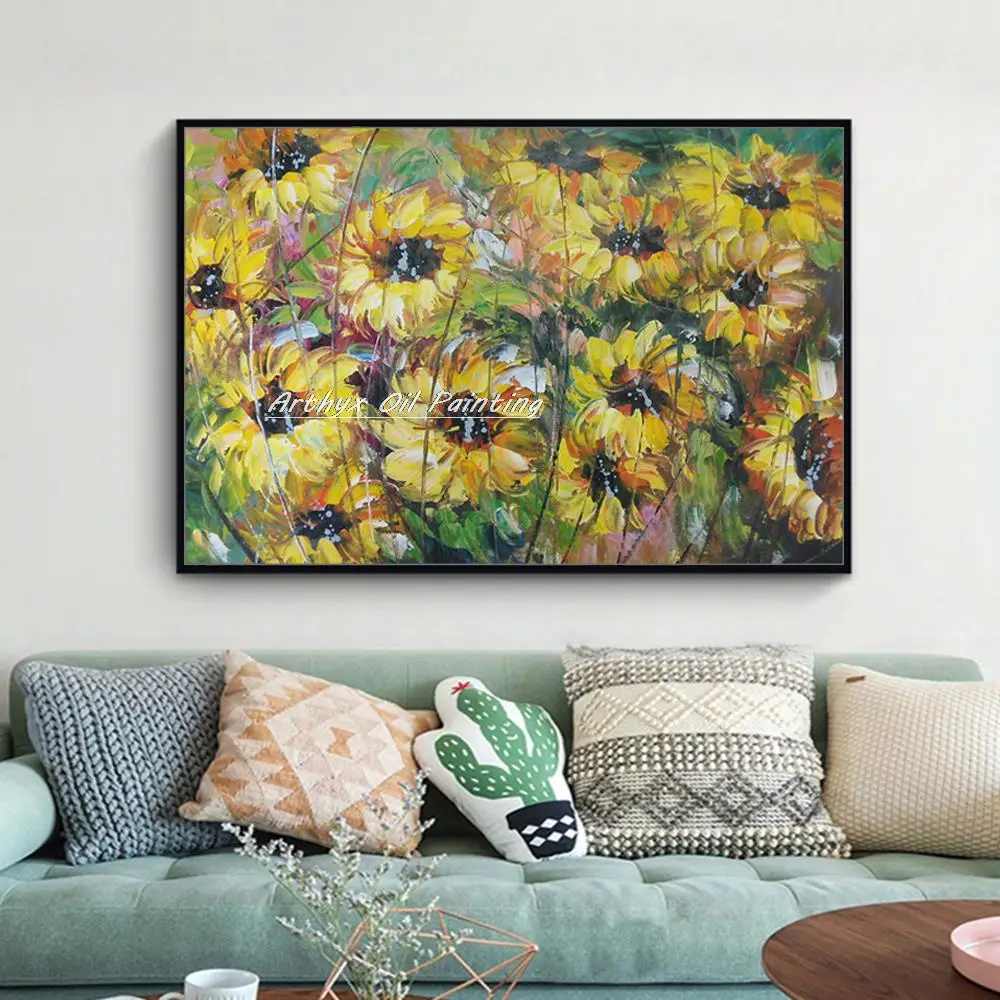 Arthyx ручная роспись маслом подсолнуха на холсте Современный абстрактный нож цветок поп-арт-стена картина для гостиной домашний декор