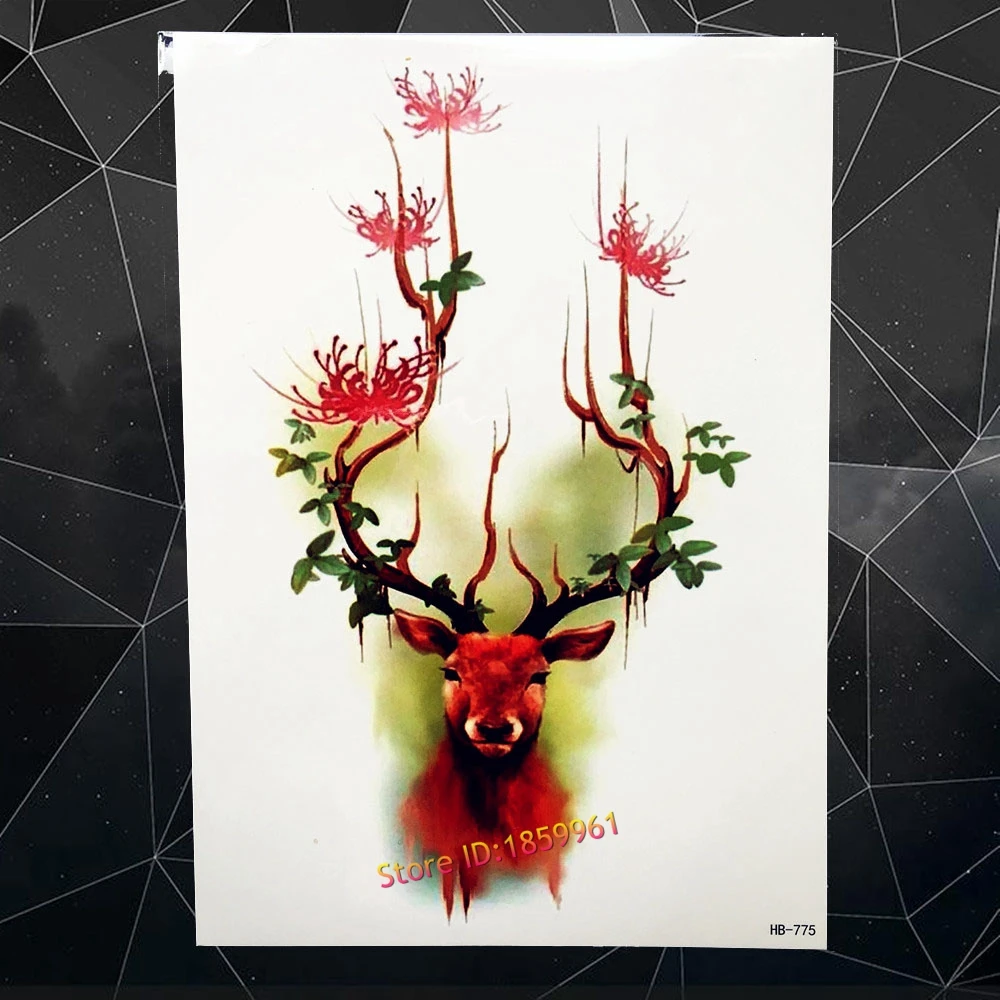 Временная татуировка черного льва хной 3D женский боди-арт руки и ноги рукав татуировки наклейки 21x15 см Олень Лось водостойкие татуировки для мужчин
