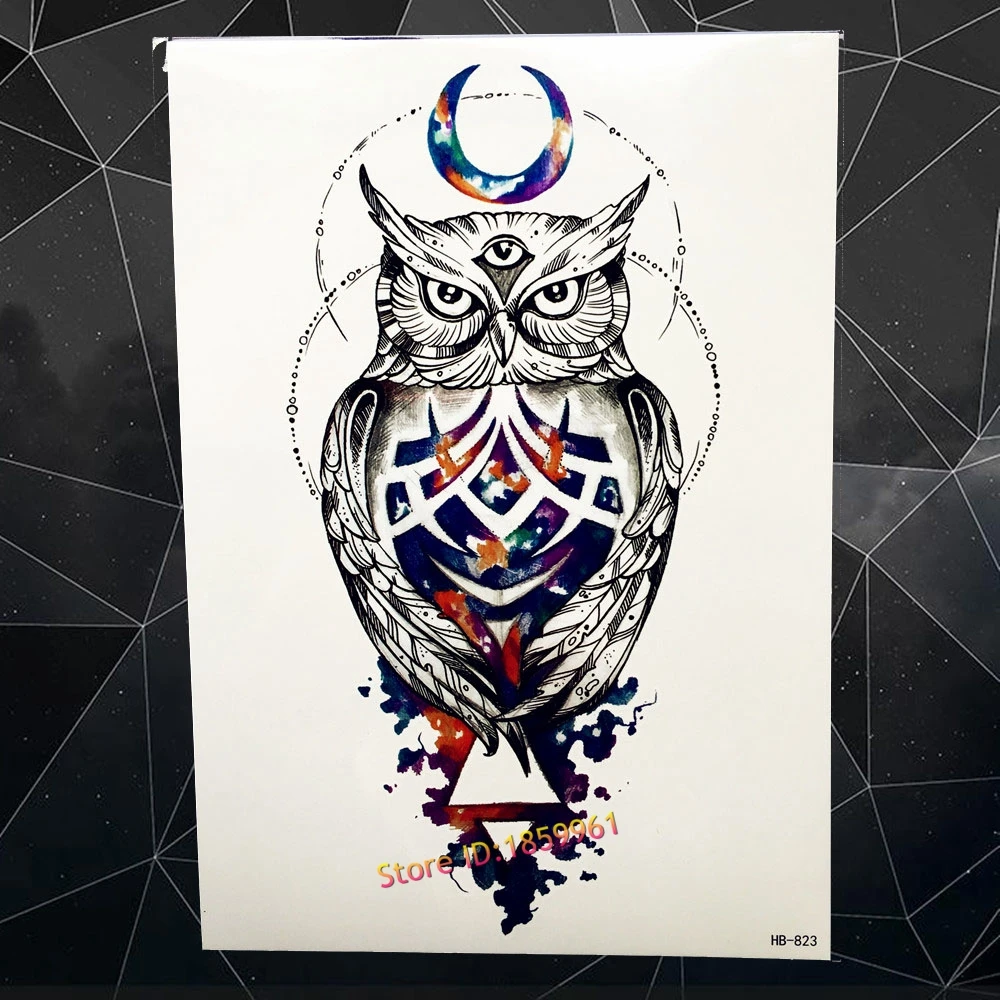 Лидер продаж, модная синяя сова, временная татуировка, наклейка на рукав для мужчин и женщин на руку, водонепроницаемая татуировка на ногу наклейки «Сова»