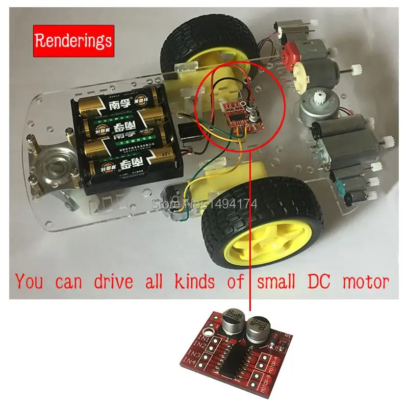 (L298N внутренний транзисторный переключатель, низкая эффективность, высокая температура, нужно добавить радиатор, громоздкий, L298N очень легко сжечь).? Двойной 1,5 А * 2, максимальный ток А, встроенная схема термозащиты, не бойтесь перегорания мотора, автоматическое восстановление после падения температуры.