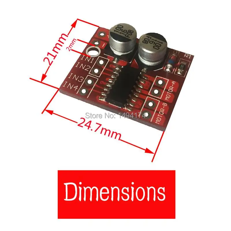 Модуль привода двигателя идеально подходит для использования в автомобилях, игрушечных машинах, роботах на аккумуляторах. Напряжение питания 2 В ~ 10 в, может управлять двумя двигателями постоянного тока или 4-проводным 2-фазным шаговым двигателем, может обеспечивать прямое или обратное вращение, есть возможность регулировки скорости вращения. Каждый может обеспечивать постоянный ток 1,5 А, максимальный ток до 2,5 А, термозащиту и может быть автоматически восстановлен.