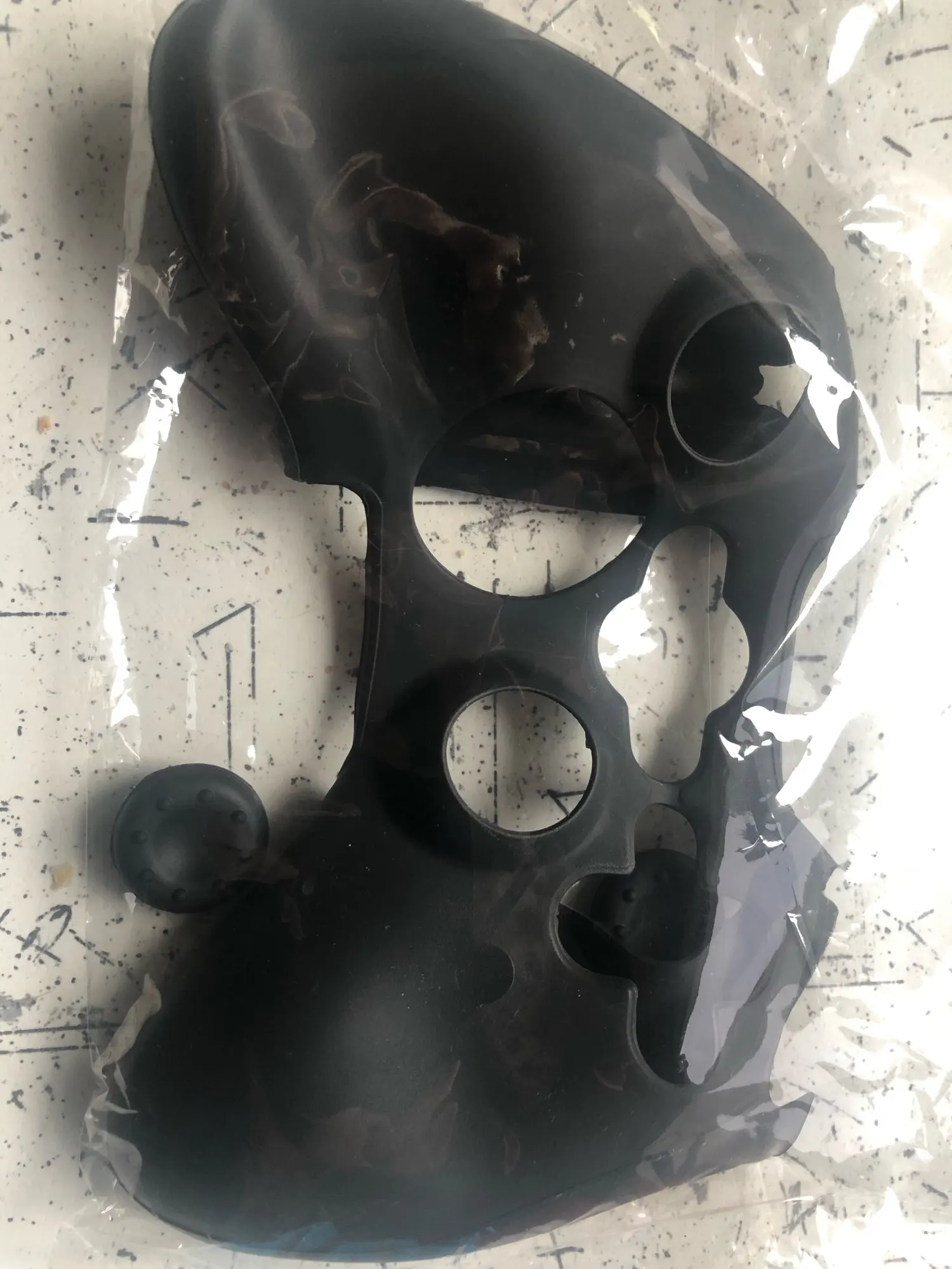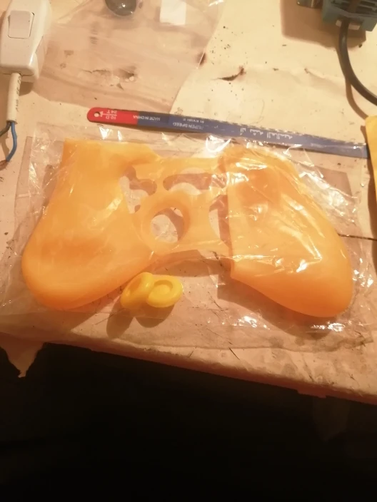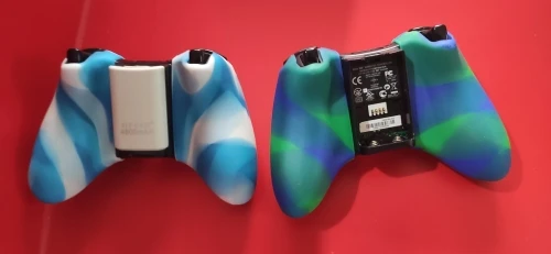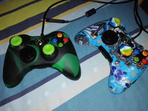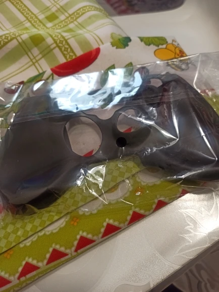 Хороший рукав, немного слишком тонкий, немного полупрозрачный, поэтому можно увидеть цвета контроля. Поставляется в полиэтиленовом пакете, поэтому он имеет небольшой удар от давления, я надеюсь, что он идет со временем. Для прикосновения и комфорта я дам ему 10/10. Легко разместить на контроллере и отлично сидит. Рукоятка большого пальца не использовала их, потому что оригиналы должны были быть удалены, потому что резина стала липкой (контролеры более 10 лет) но они выглядят идеально, чтобы покрыть оригинальные джойстики заводским пластиком/кремнием.