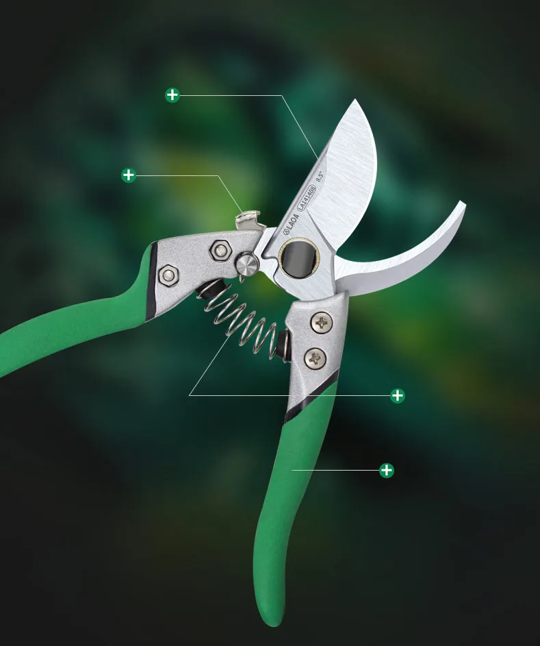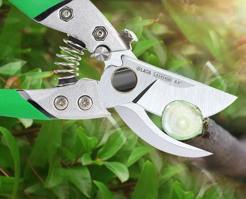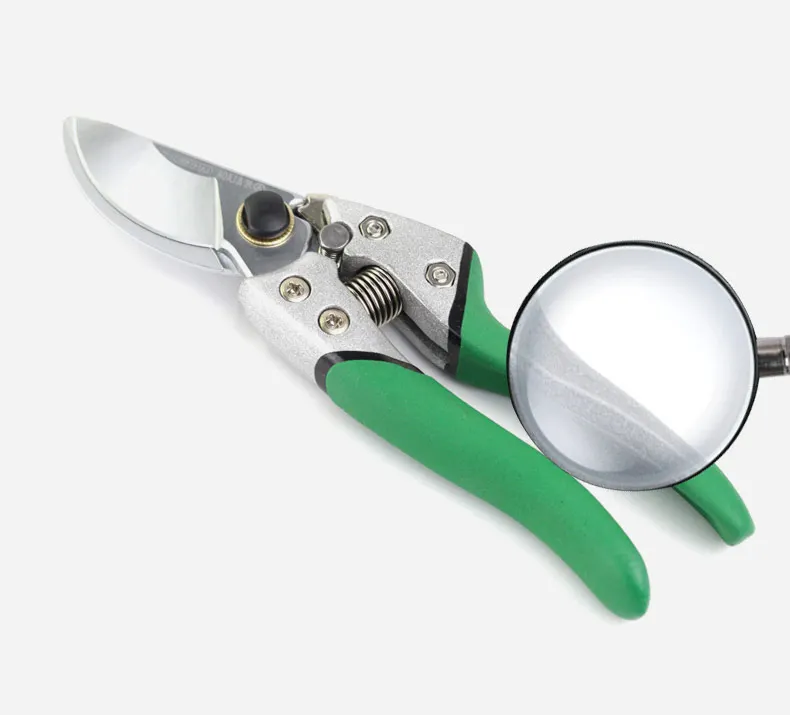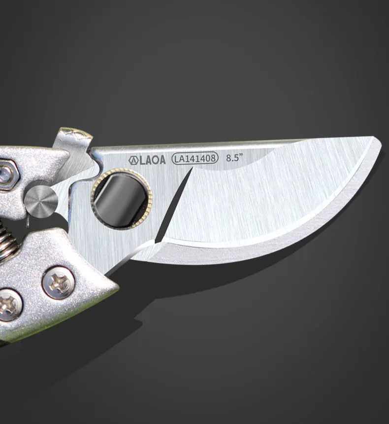 Не плохой клон ARS VS-8. Общая длина 20.5 см (если считать по верхнему лезвию, то 20 см). Длина лезвия 5.4 мм (если считать от края до края заточки) Толщина верхнего лезвия 3,6 мм, поддерживающего 3,5 мм. Угол спуска 10,5 градусов. Толщина в зоне подвода примерно 0,7 мм. Пружина немного жестче ленточной пружины клона Felco 8 (усилие примерно 1,4 кг на сжатой пружине против 1,2 кг). Вес 235 грамм. Режет туалетную, бумагу, но потому что перетянут винт, если снять пружину, то секатор не закрывается под своим весом). Фиксатор держит уверено. При сжатии ручек освобождается. Ручки шершавые (плюс не скользят в перчатках, минус хуже ощущаются в голой руке и скорее всего будут хуже отмываться) и зеленые, что не есть хорошо - будет не очень заметно в траве. На нижней ручке облив ручки (черный) задирается (если цеплять ногтем). На упаковке твердость написана иероглифами 58+-2HRC, а на английском 50+-2HRC. Стойкость заточки, прочность ручек на разлом покажет только эксплуатация.