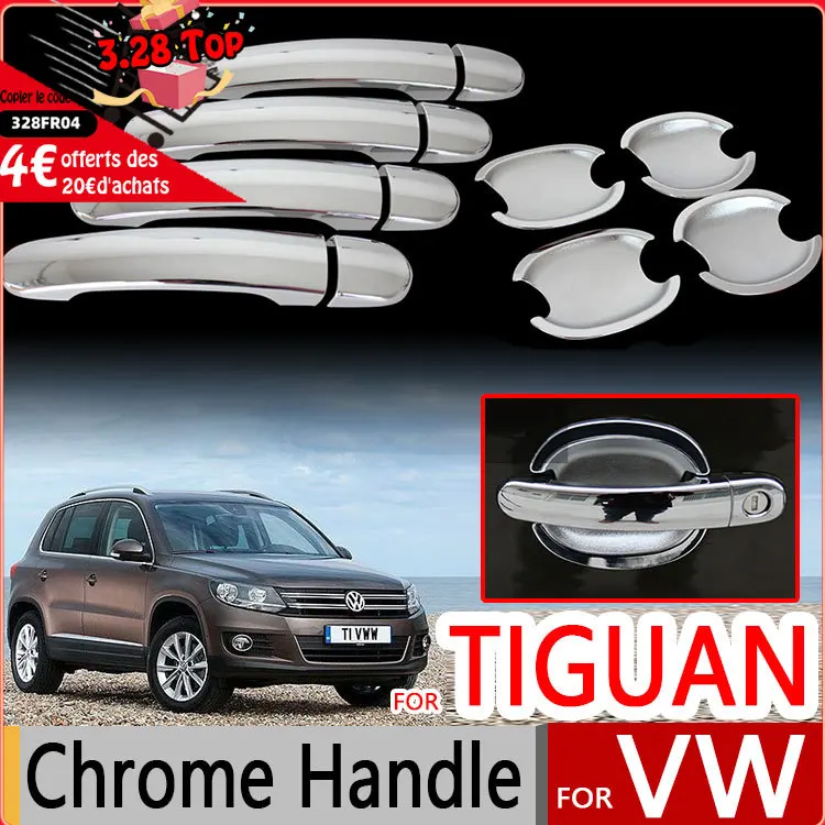 Хромированные накладки на дверные ручки для VW Tiguan 2007-2016, аксессуары для автомобиля Volkswagen, наклейки для стайлинга автомобиля MK1 2009 2010 2012 2014 2015