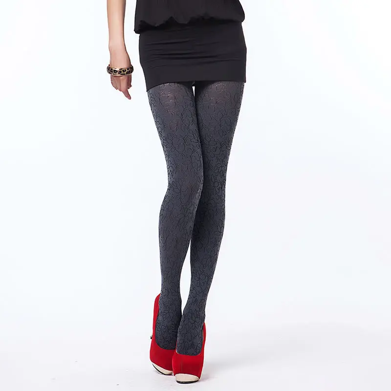 Весенне-осенние жаккардовые бархатные колготки 280 Denier, популярные пикантные не непрозрачные высокоэластичные серые колготки с узором