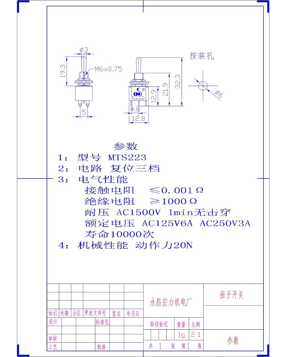Тумблер с длинной плоской ручкой 3-контактный ВКЛ-ВЫКЛ SPDT CQC ROH...
