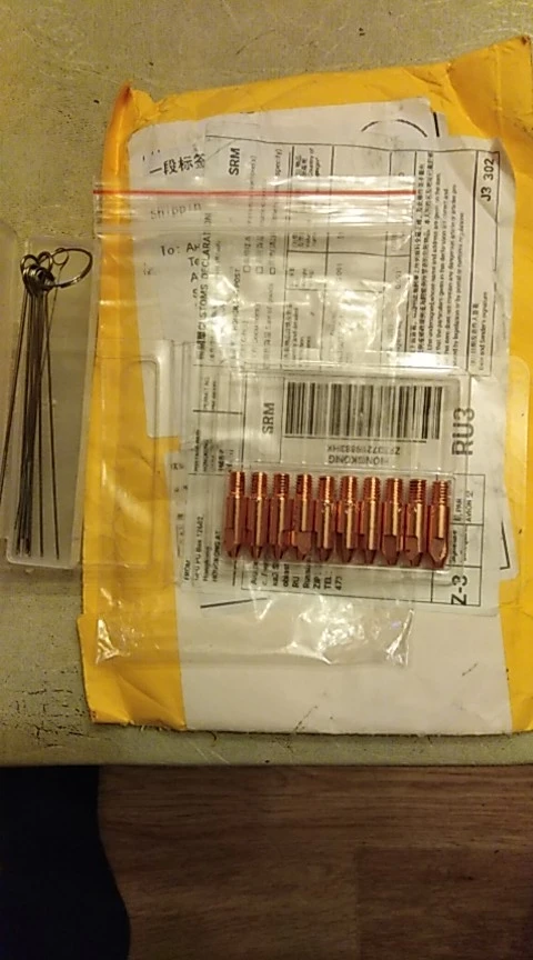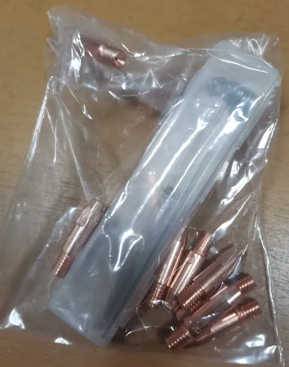 Доставка быстрая,наконечники качественные,с маркировкой,10 штук плюс 10шт спиц для прочистки разного диаметра.Брал для горелки fubag fb250-размеры подошли идеально.Рекомендую.
