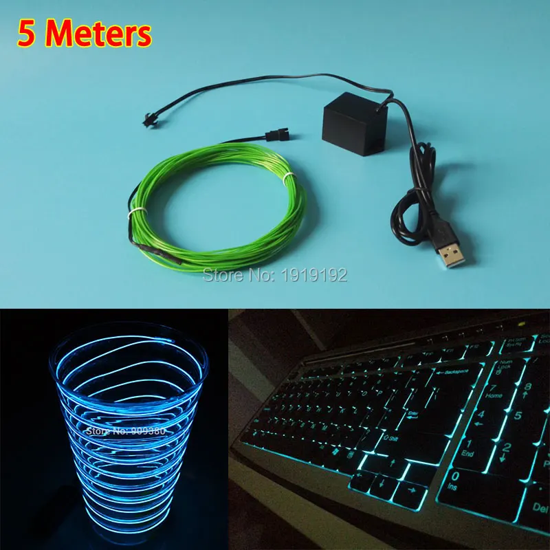 1 шт. 1,3 мм 5 метров Гибкий электролюминесцентный провод el Rope неоновый свет светящийся для вечеринки танцевальное украшение с 5V-USB контроллером